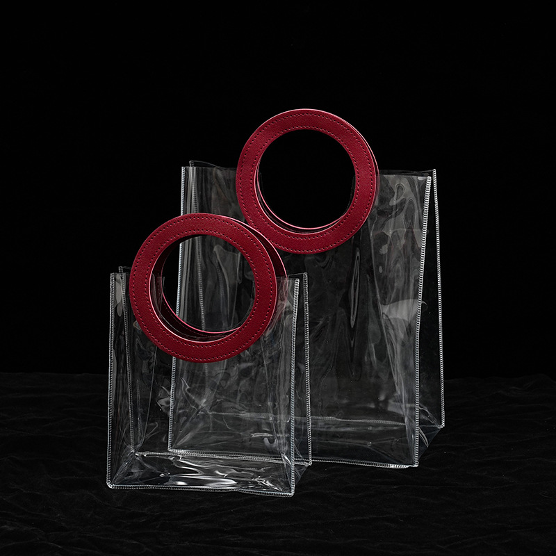공장 재고 PVC 투명 핸드백 생일 사탕 선물 포장 가방 새로운 플라스틱 선물 가방 도매스토어 가기