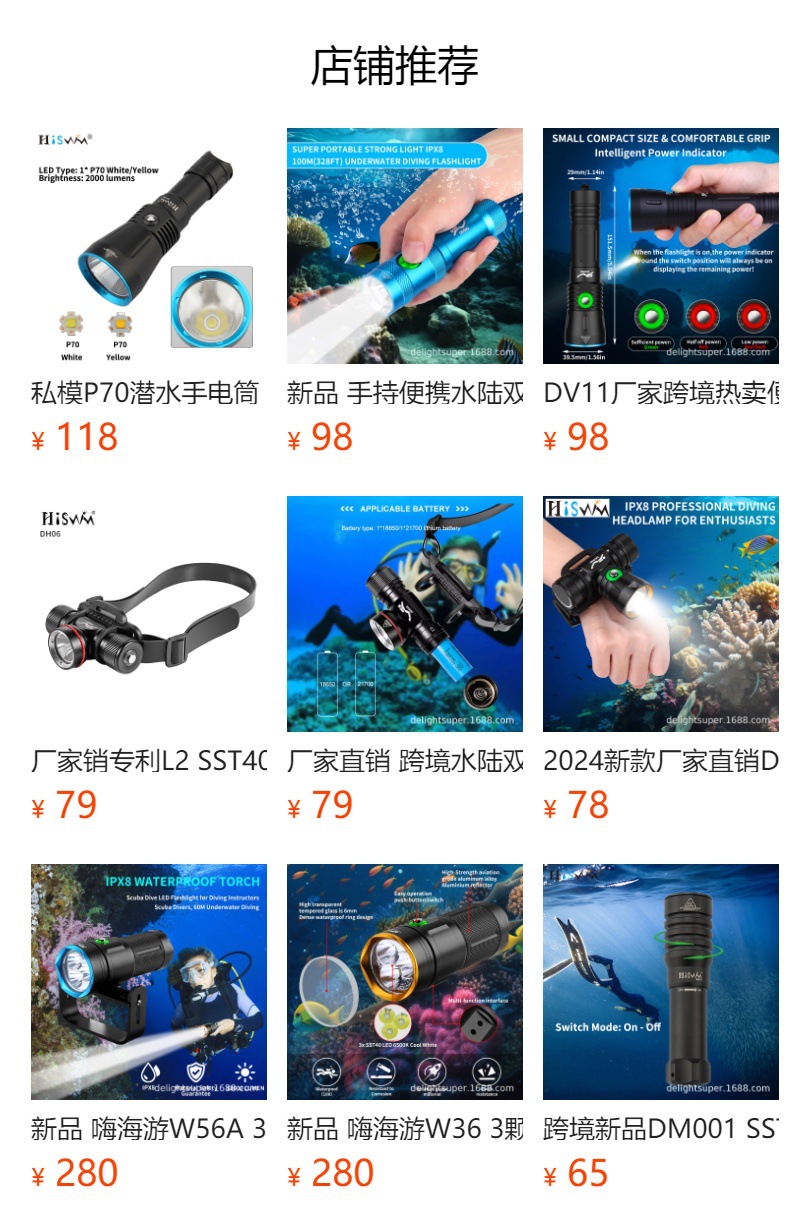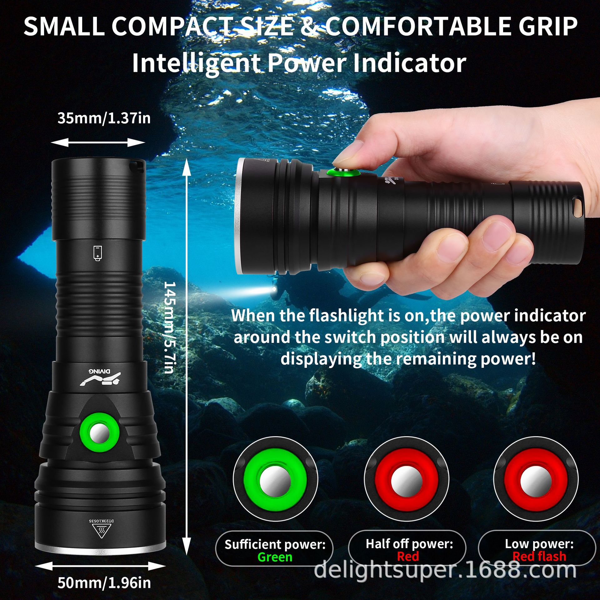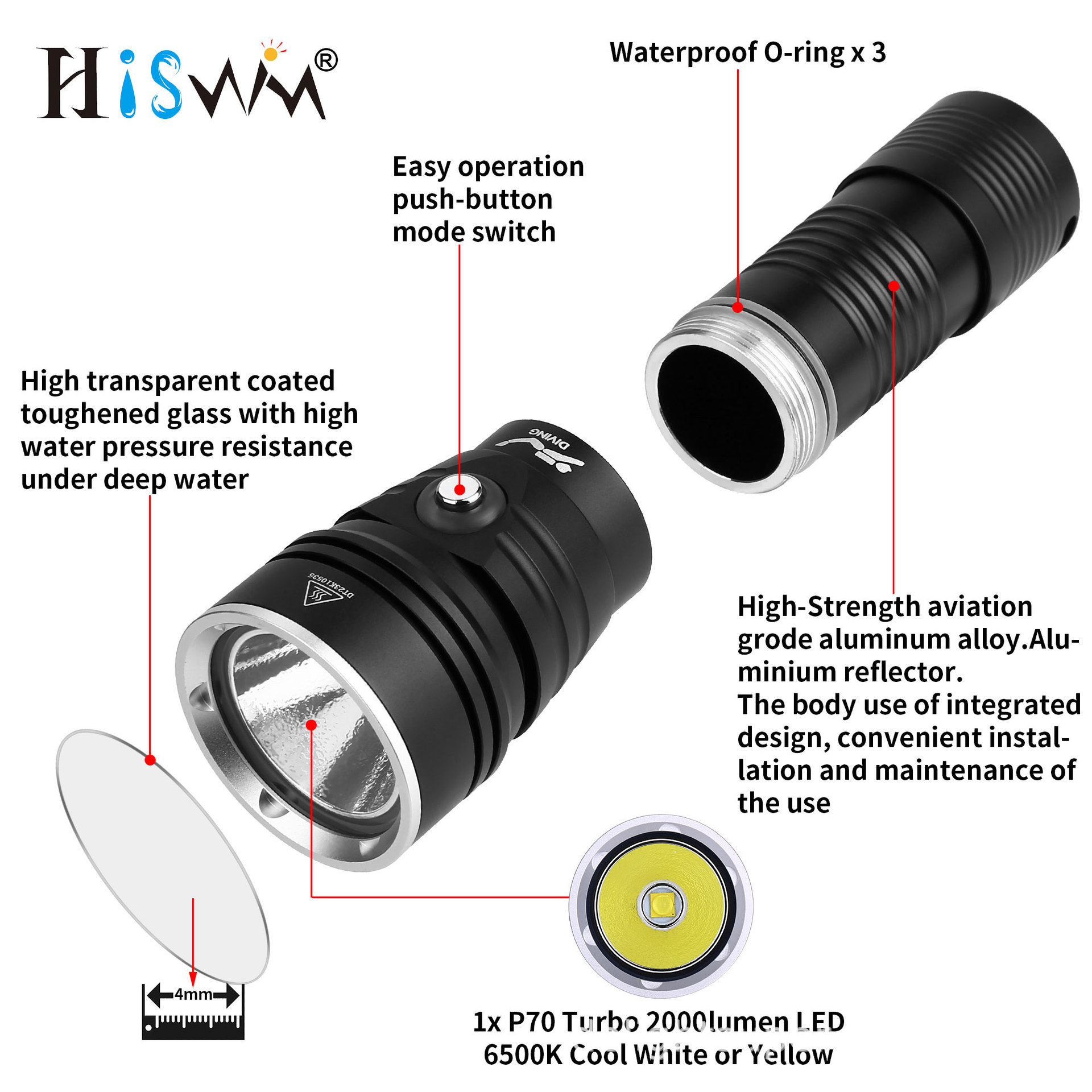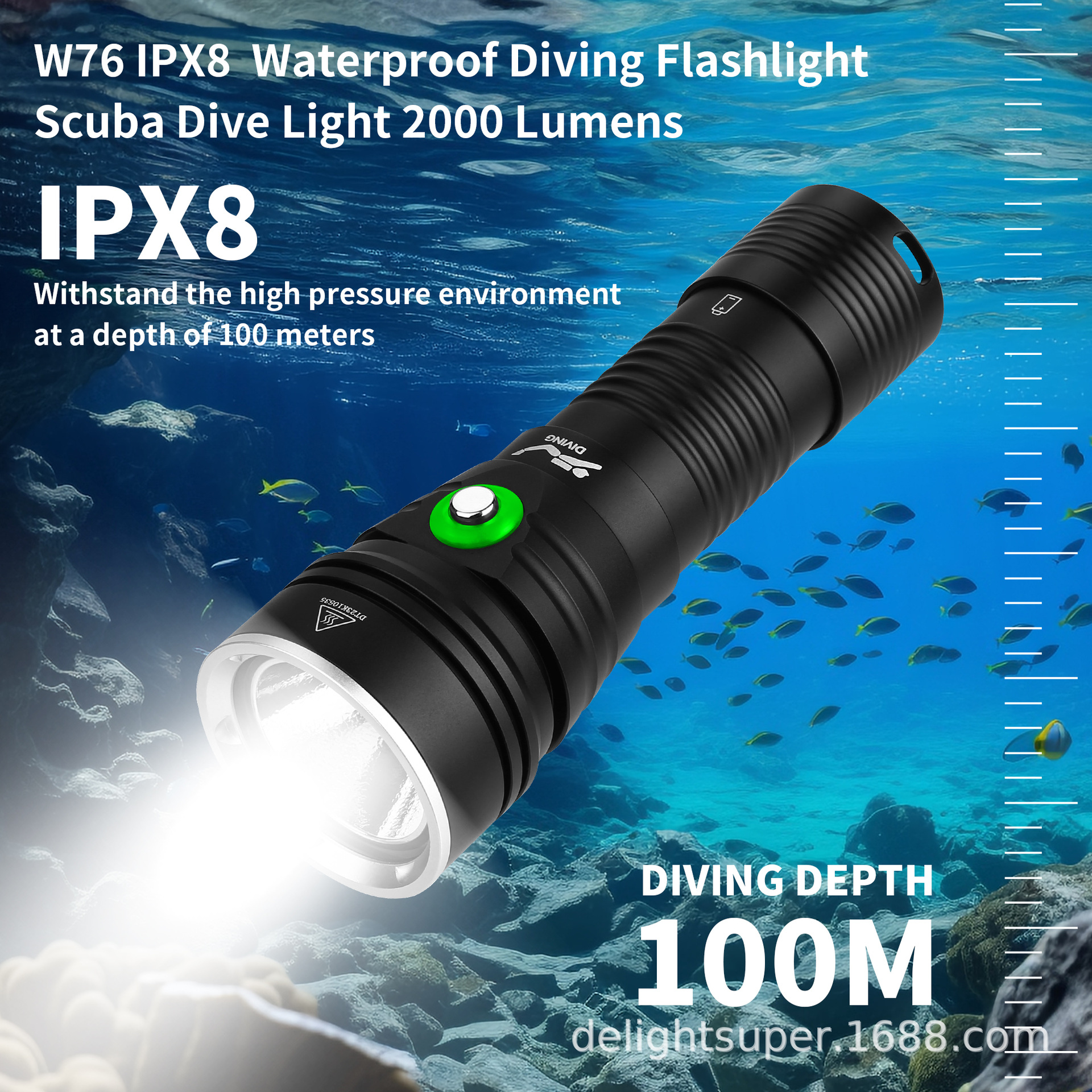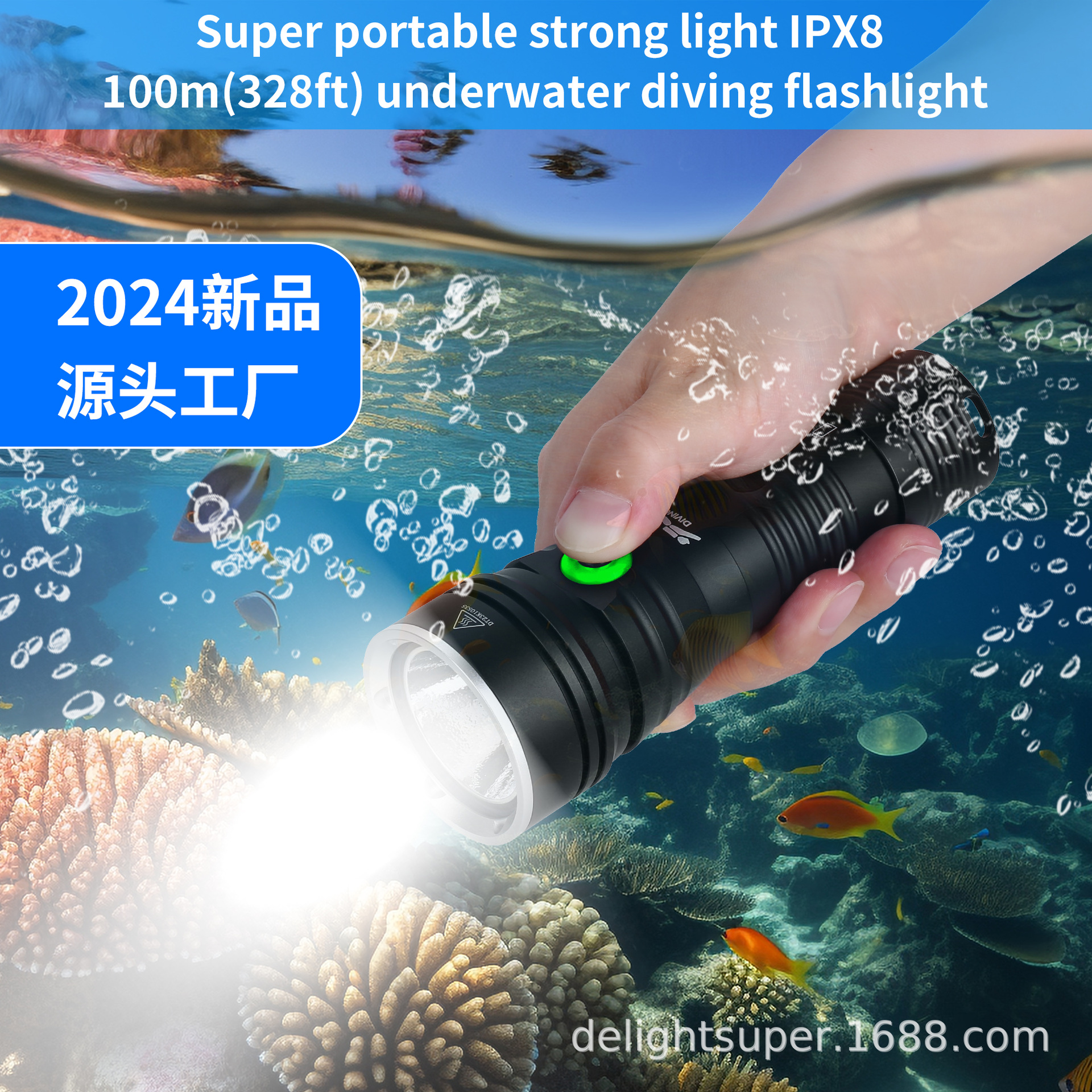 产品名称:2024跨境新品高功率强光P70潜水手电筒 2000流明户外潜水手电筒