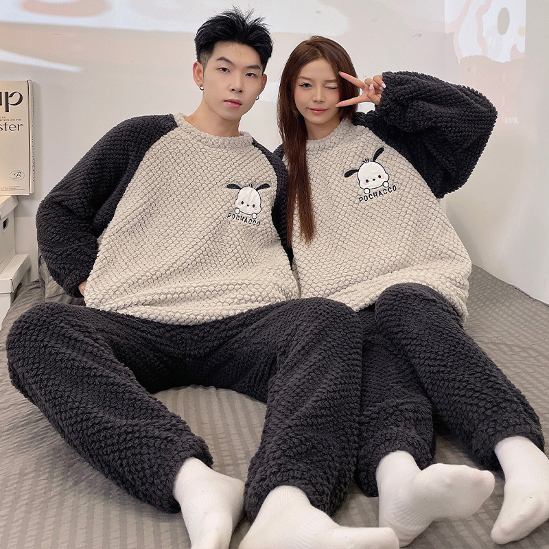 커플의 두꺼운 산호 양털 잠옷 여자의 가을과 겨울 달콤한 만화 풀오버 남자의 따뜻한 플란넬 플러스 사이즈 가정 옷