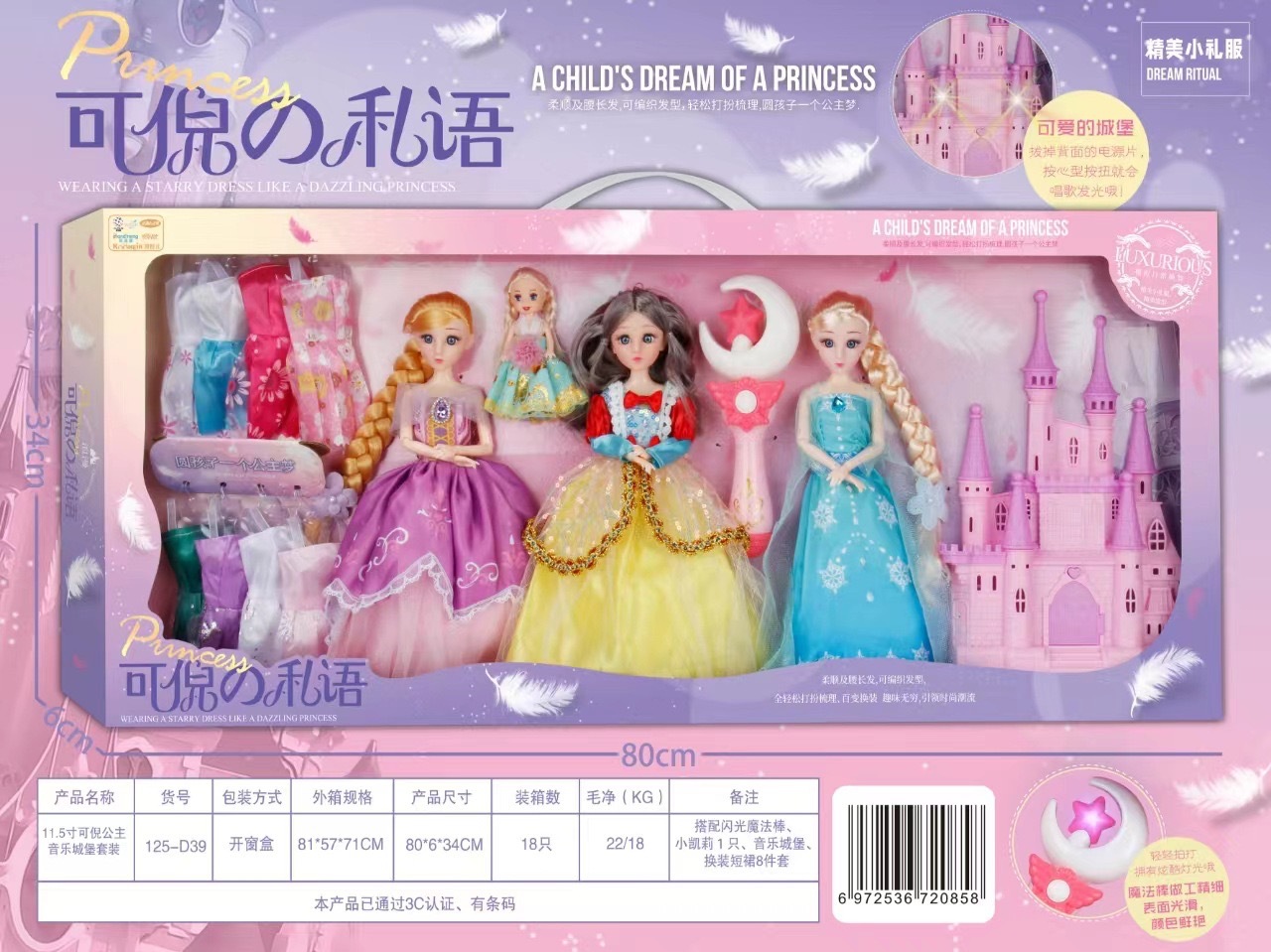• 11.5인치 공주 뮤직 캐슬 [마법봉 포함, 인형 3개 + 스커트 8종 세트] 125-d39