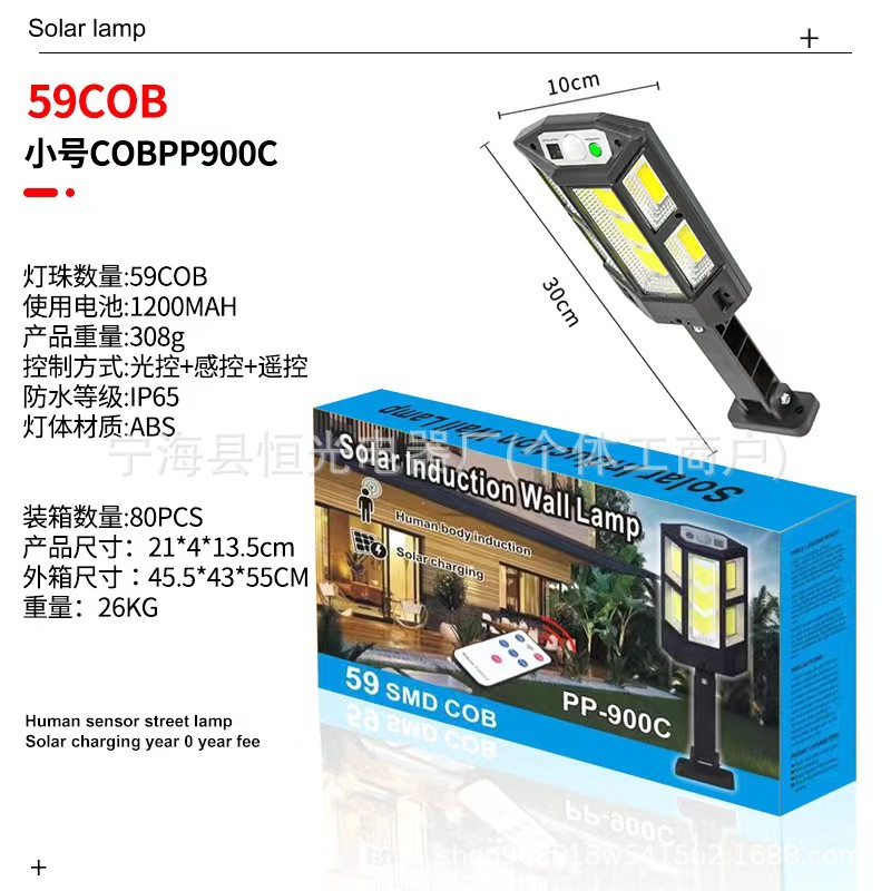 국경 새로운 태양 정원 램프 인체 유도 원격 제어 가정용 벽 램프 LED 방수 가로등 야외 슈퍼 밝은