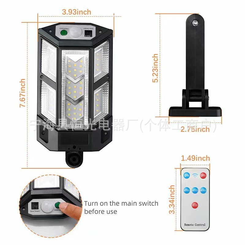 국경 새로운 태양 정원 램프 인체 유도 원격 제어 가정용 벽 램프 LED 방수 가로등 야외 슈퍼 밝은스토어 가기