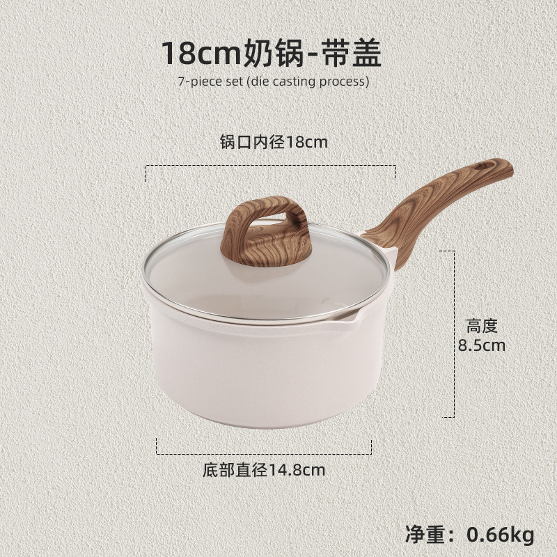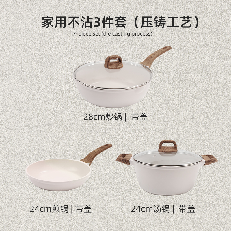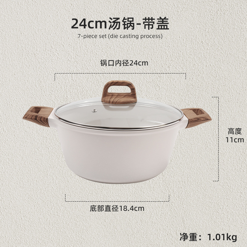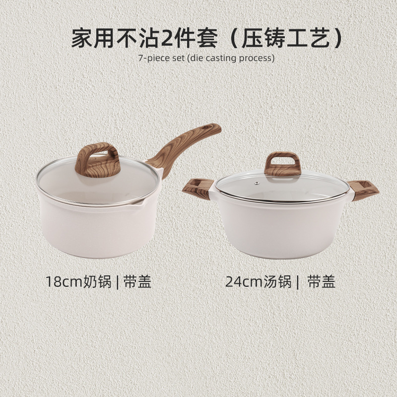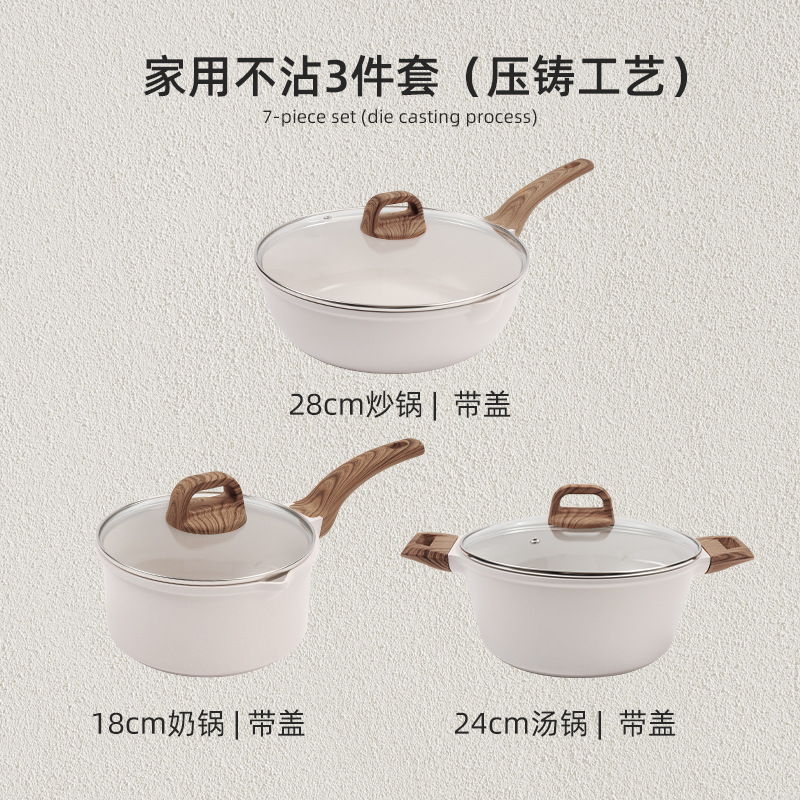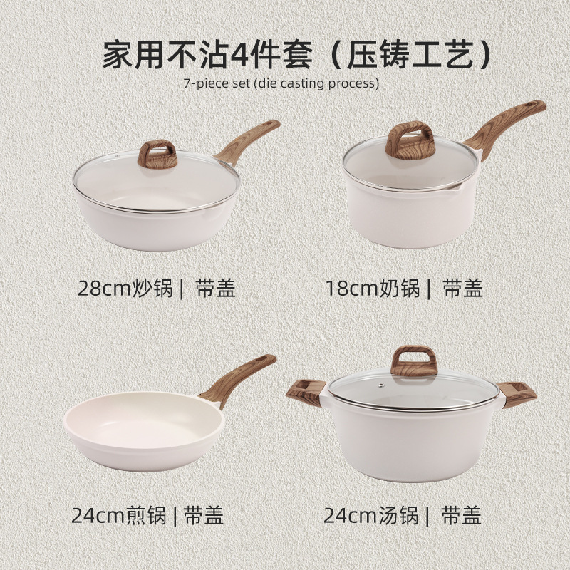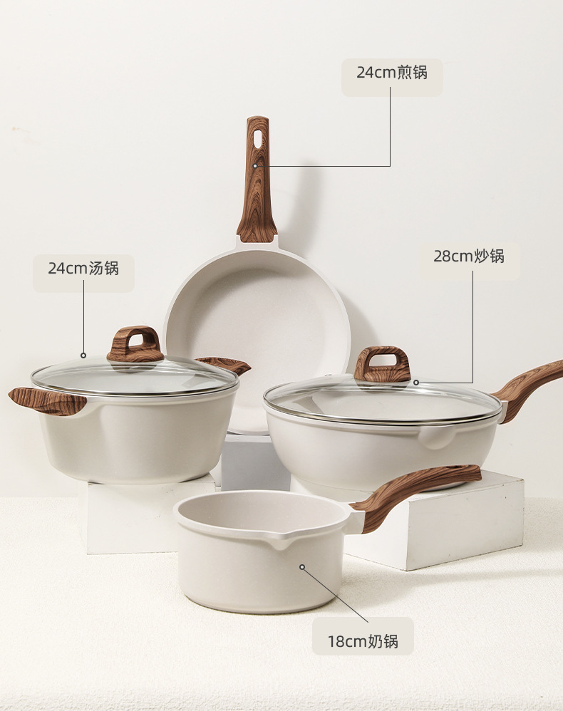 국경 간 Maifan Stone Wok 붙지 않는 팬 세트 냄비 팬 가정용 수프 냄비 4 조각 조합 프라이팬