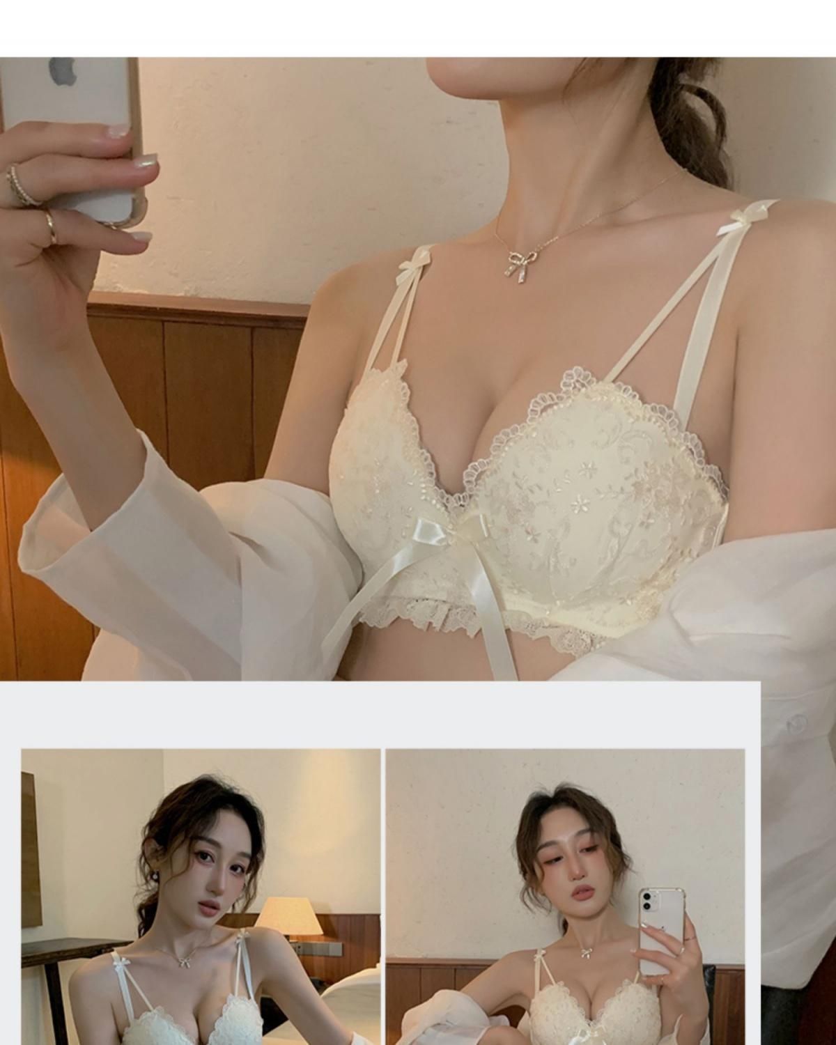 일본 자수 아름다운 다시 레이스 섹시한 속옷 여자의 작은 가슴 푸시 업 아니 스틸 링 큰 핏 브래지어 세트