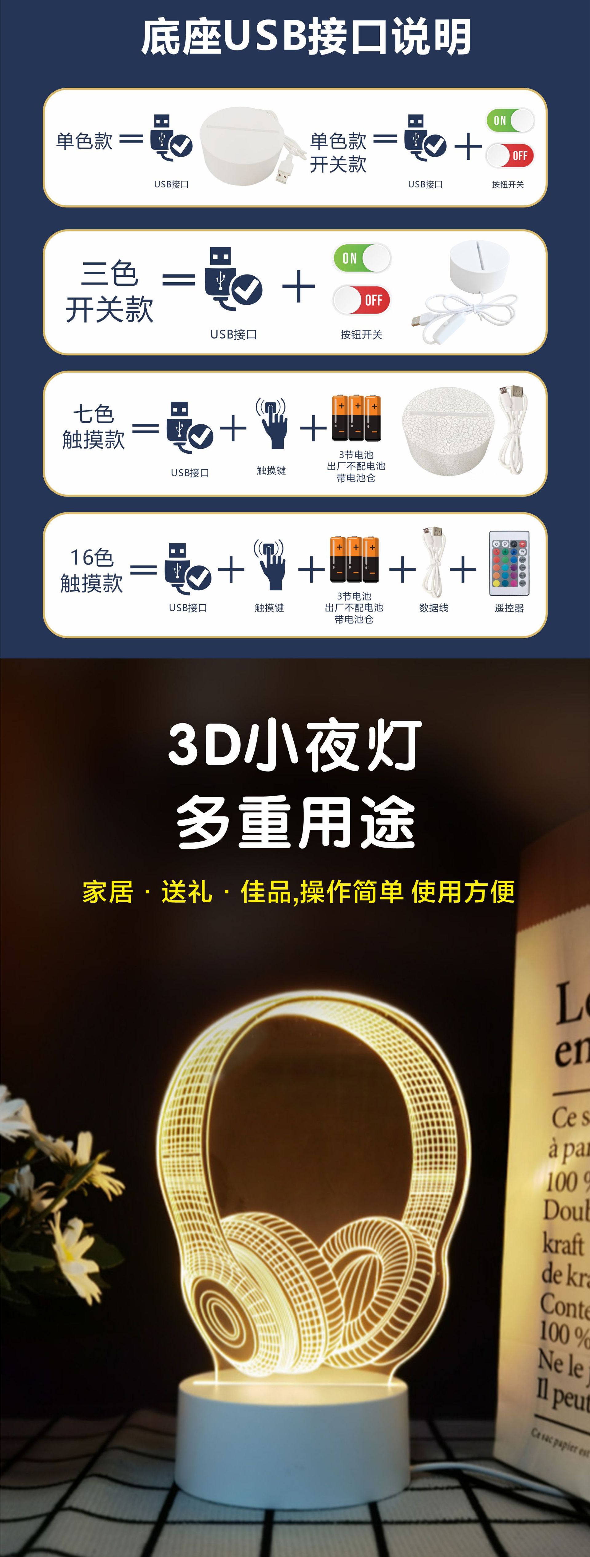 넥타이 주니어 꽃 왕 눈 보호 장식품 LED 테이블 램프 침실 장식 3D 야간 조명 발렌타인 데이 선물스토어 가기