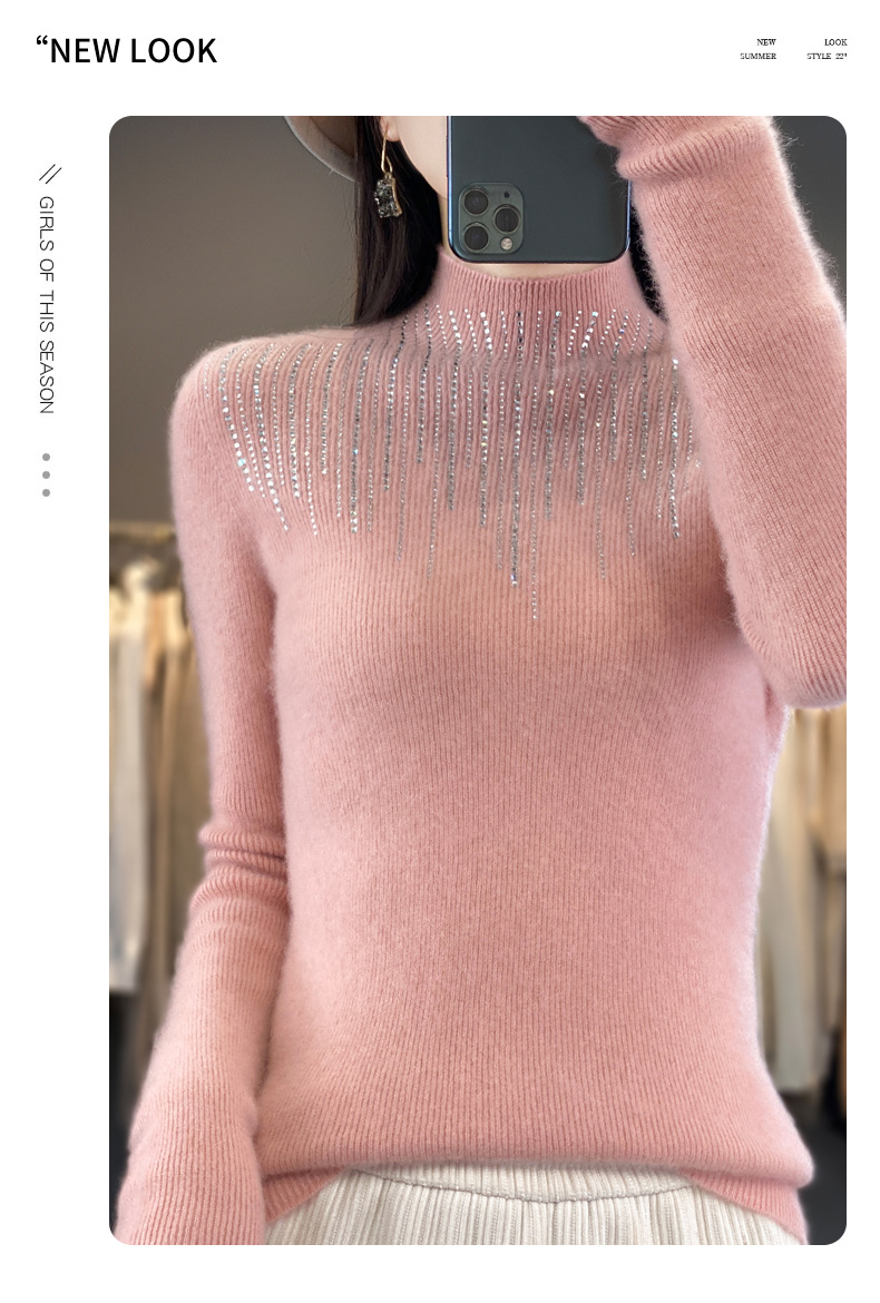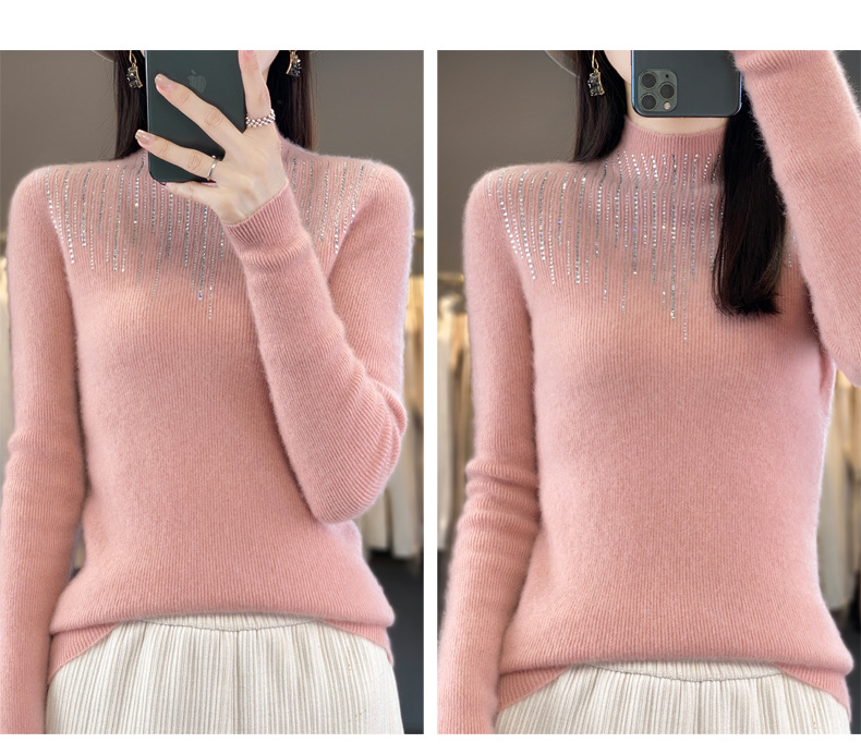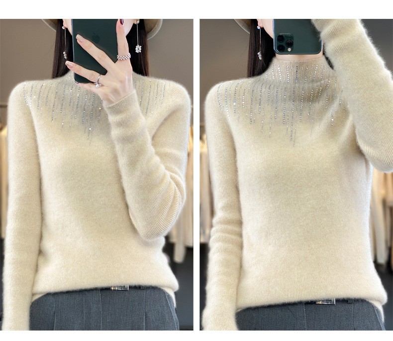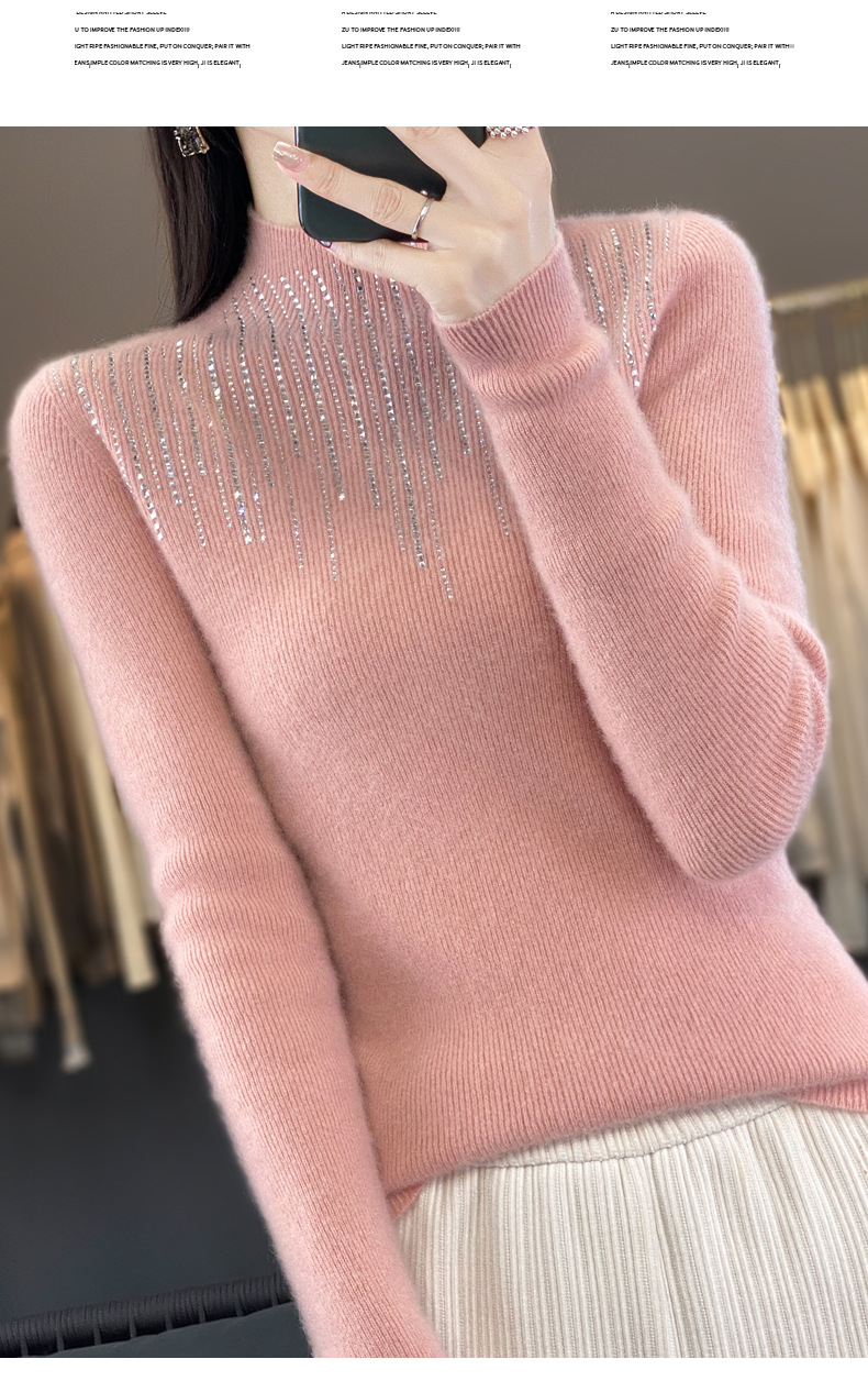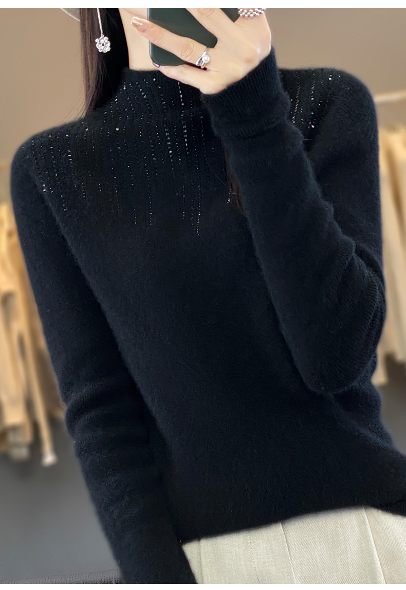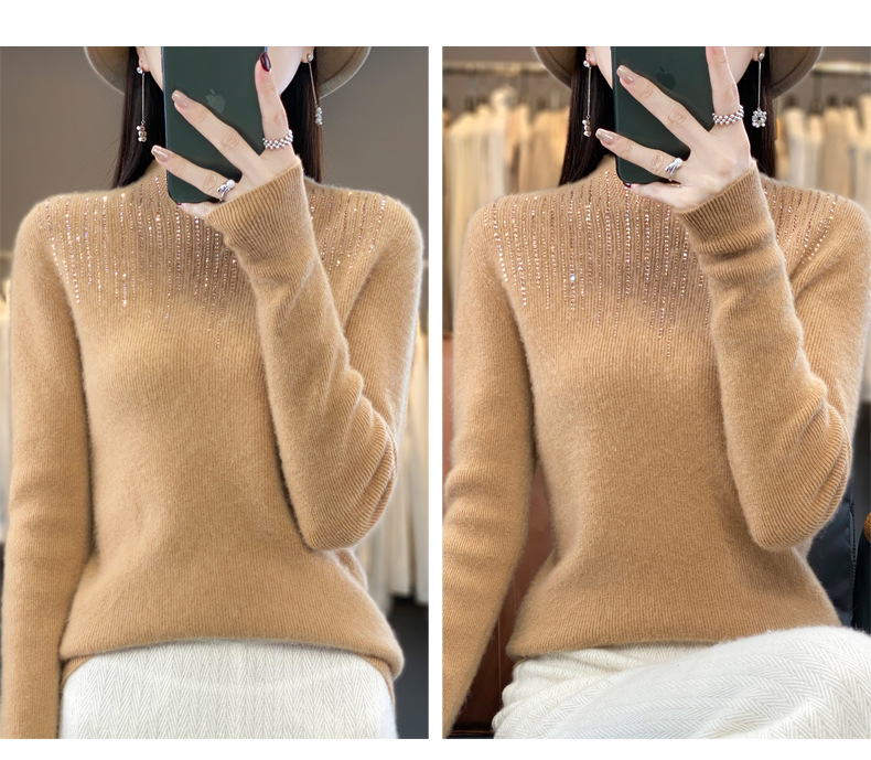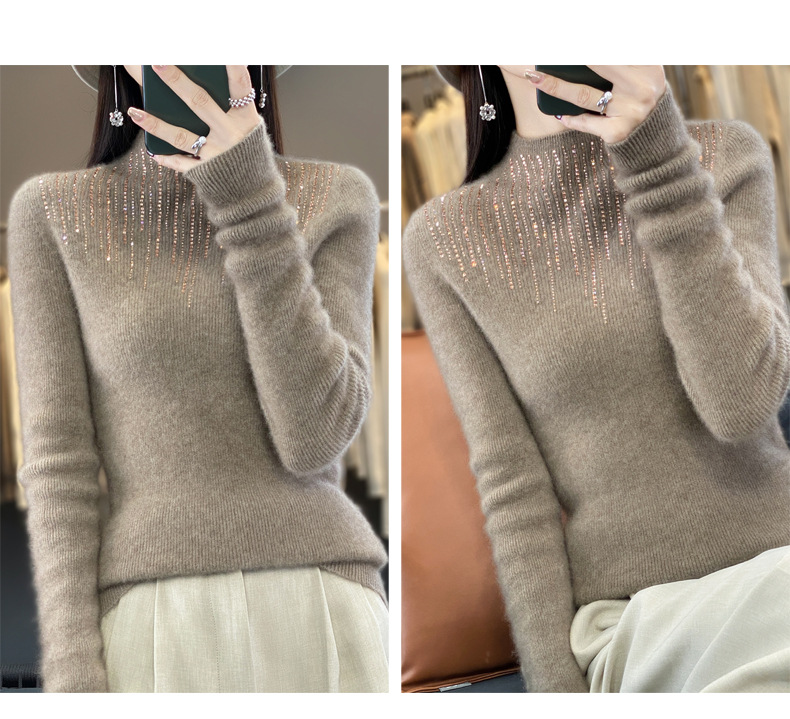 여성용 스웨터 가을 겨울 신상품 반짝이 니트 여성용 이너웨어 반하이넥 두꺼운 비양모 베이스 셔츠 한국 스타일 두꺼운 보온성