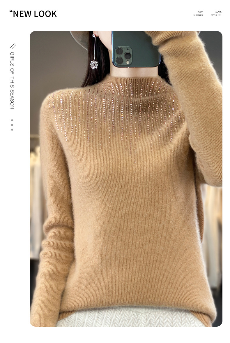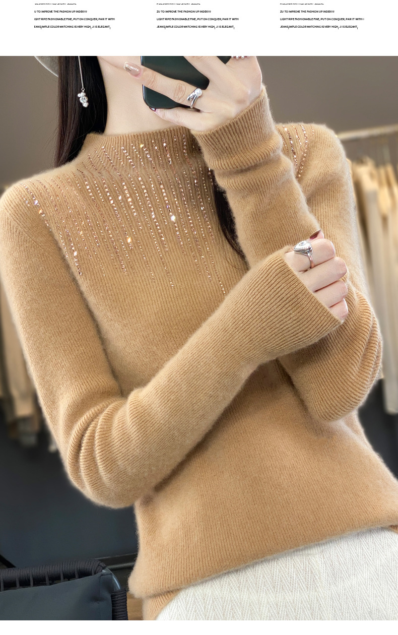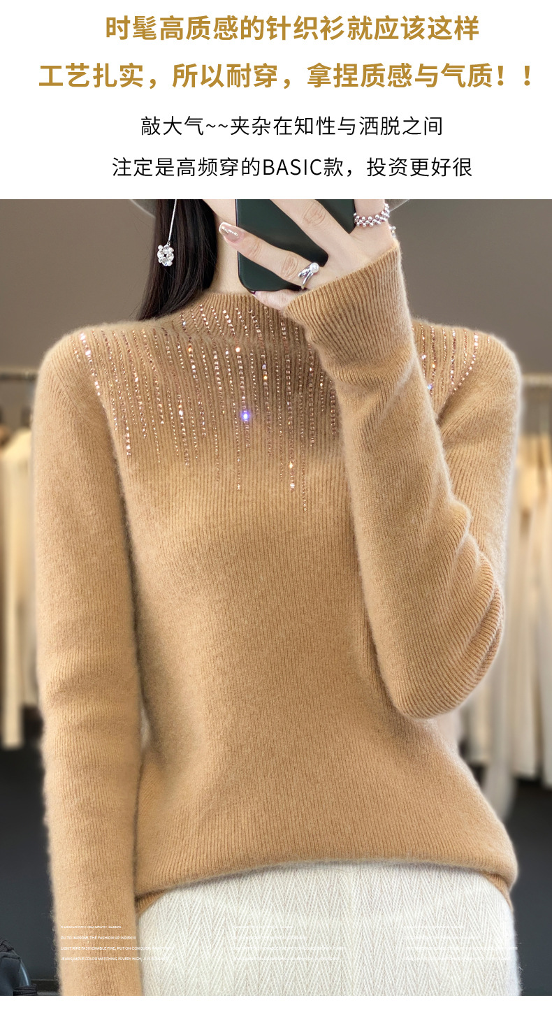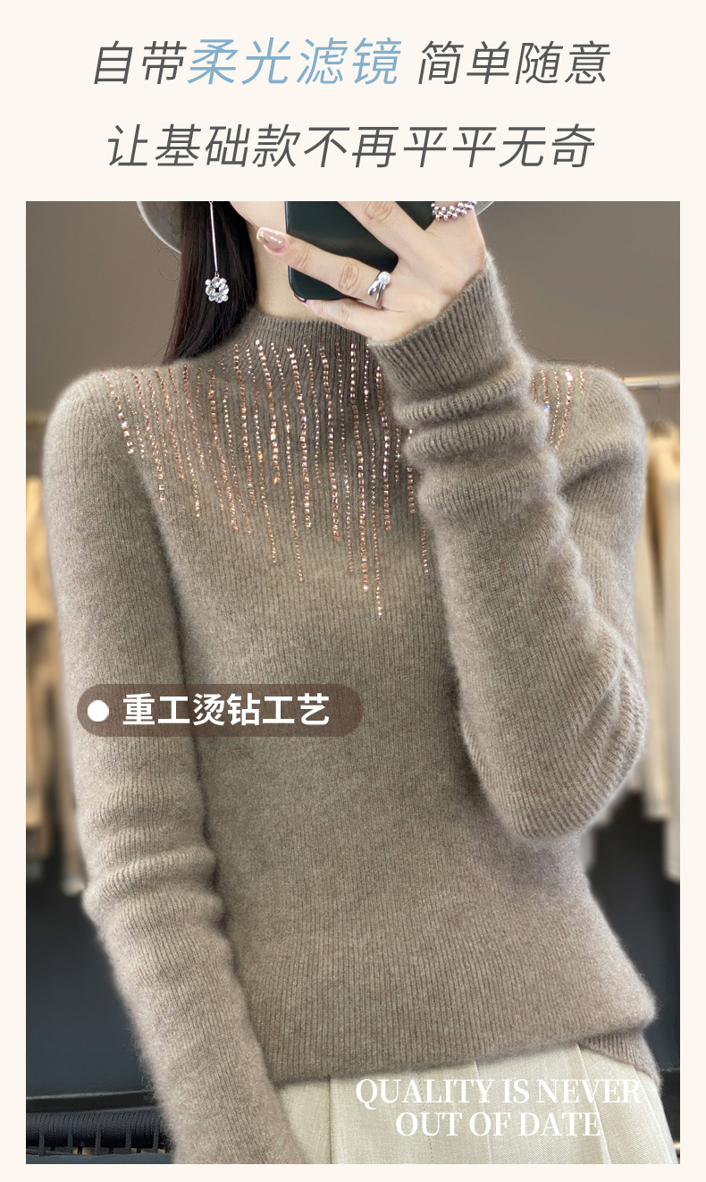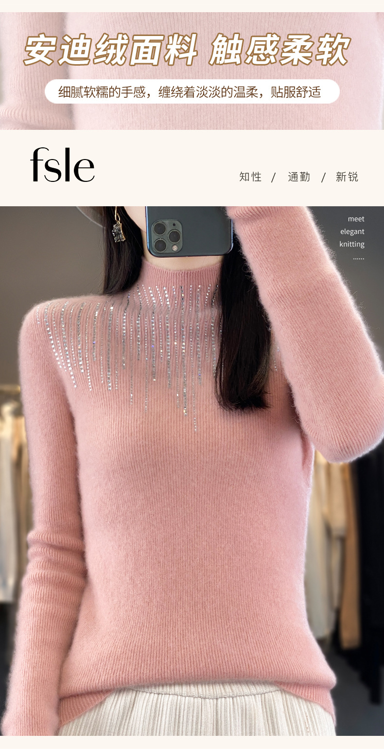 여성용 스웨터 가을 겨울 신상품 반짝이 니트 여성용 이너웨어 반하이넥 두꺼운 비양모 베이스 셔츠 한국 스타일 두꺼운 보온성