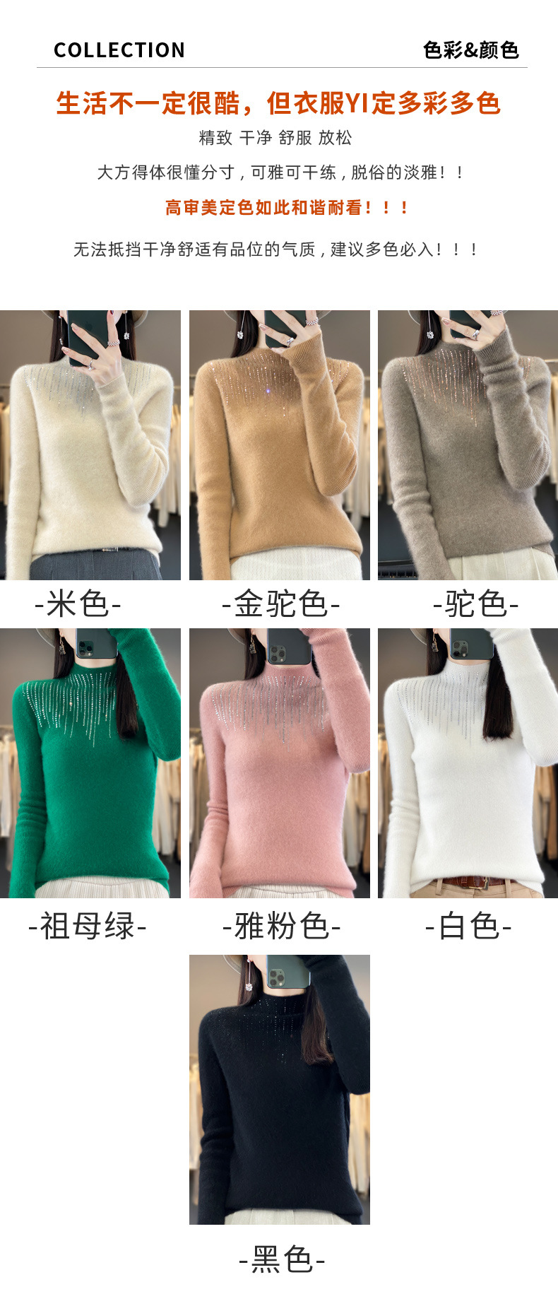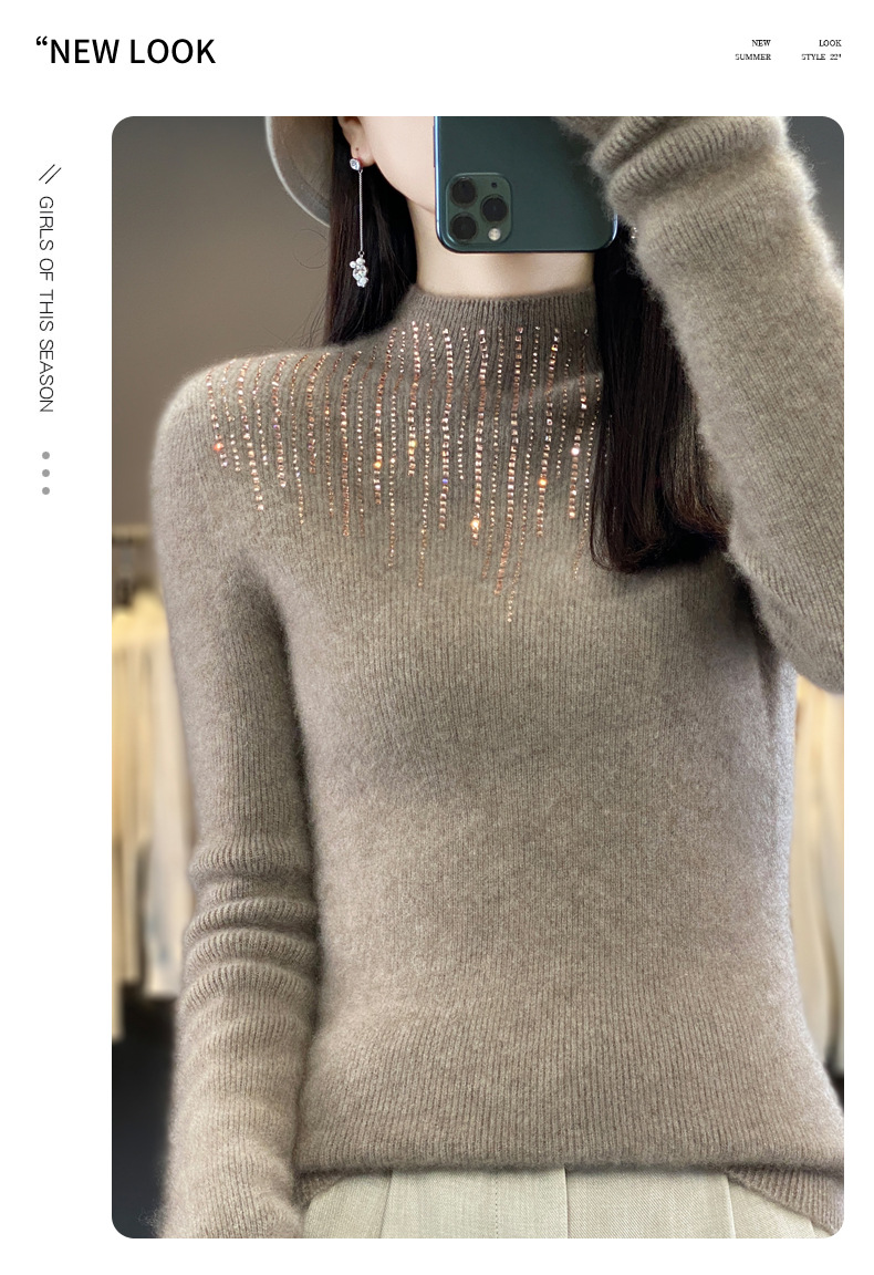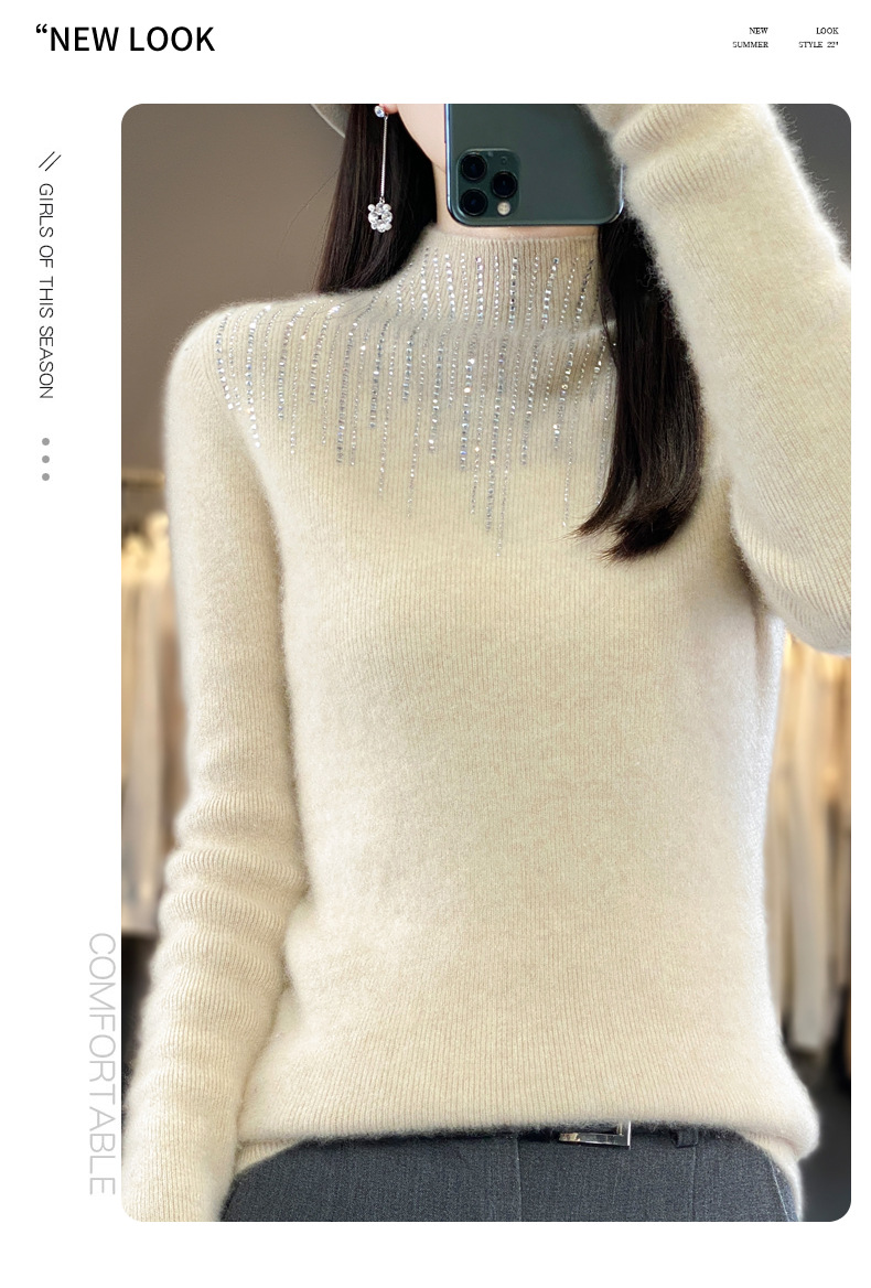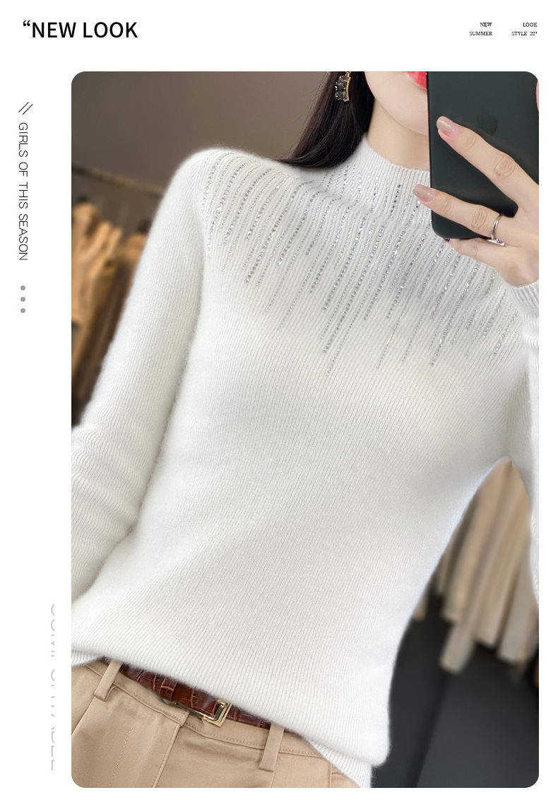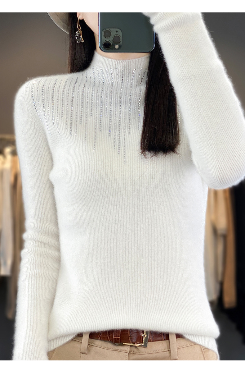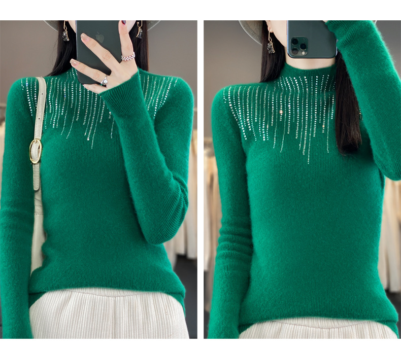 여성용 스웨터 가을 겨울 신상품 반짝이 니트 여성용 이너웨어 반하이넥 두꺼운 비양모 베이스 셔츠 한국 스타일 두꺼운 보온성