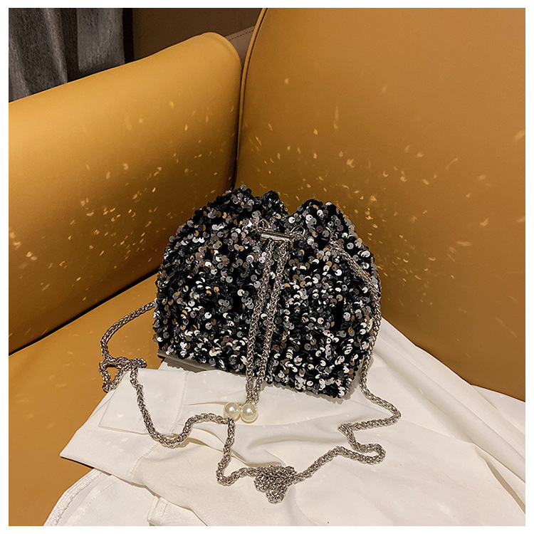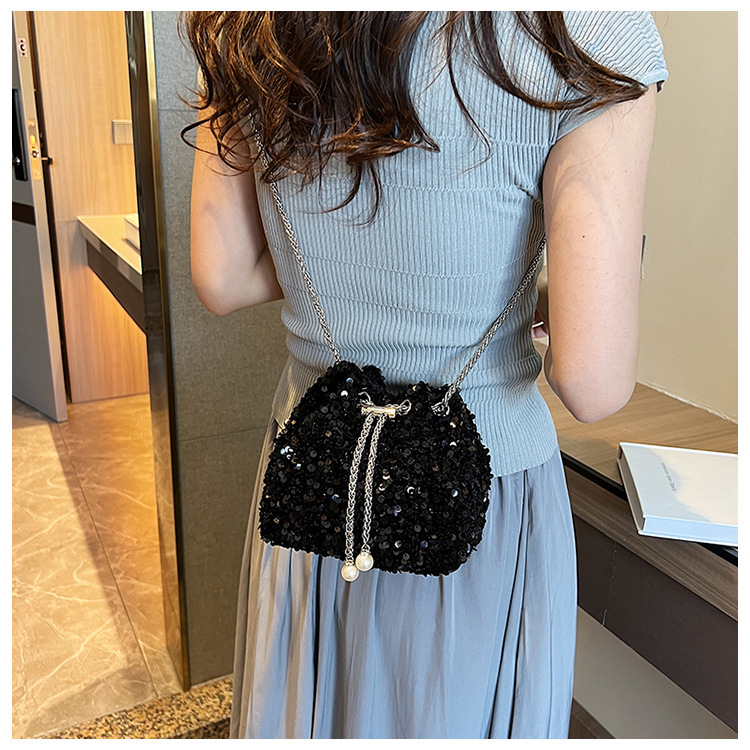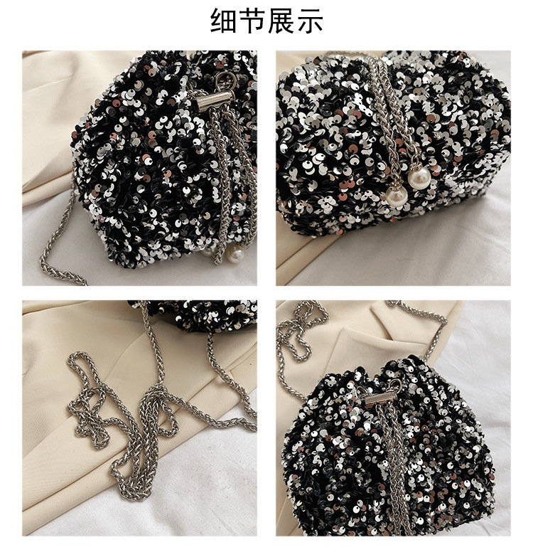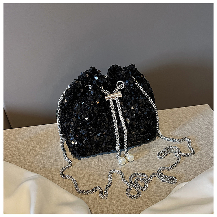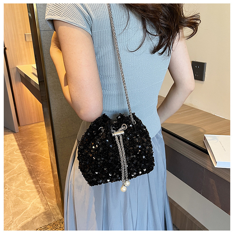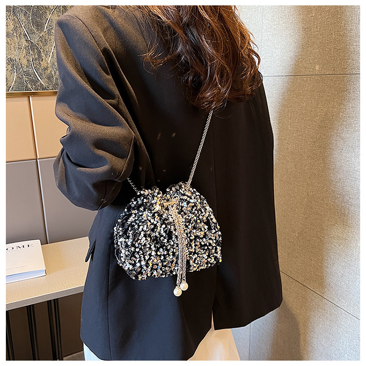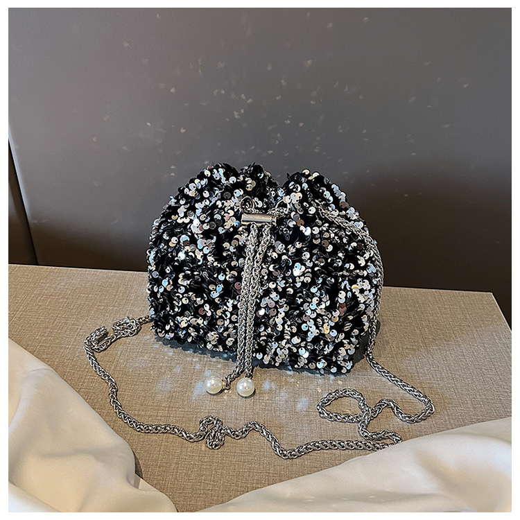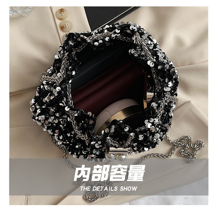 패션 개인화 된 스팽글 백 여성용 2023 새로운 한국 버킷 백 세련된 숄더백 트렌디 한 크로스바디 이브닝 백