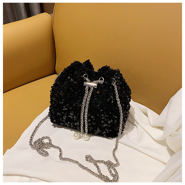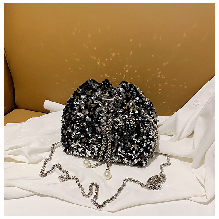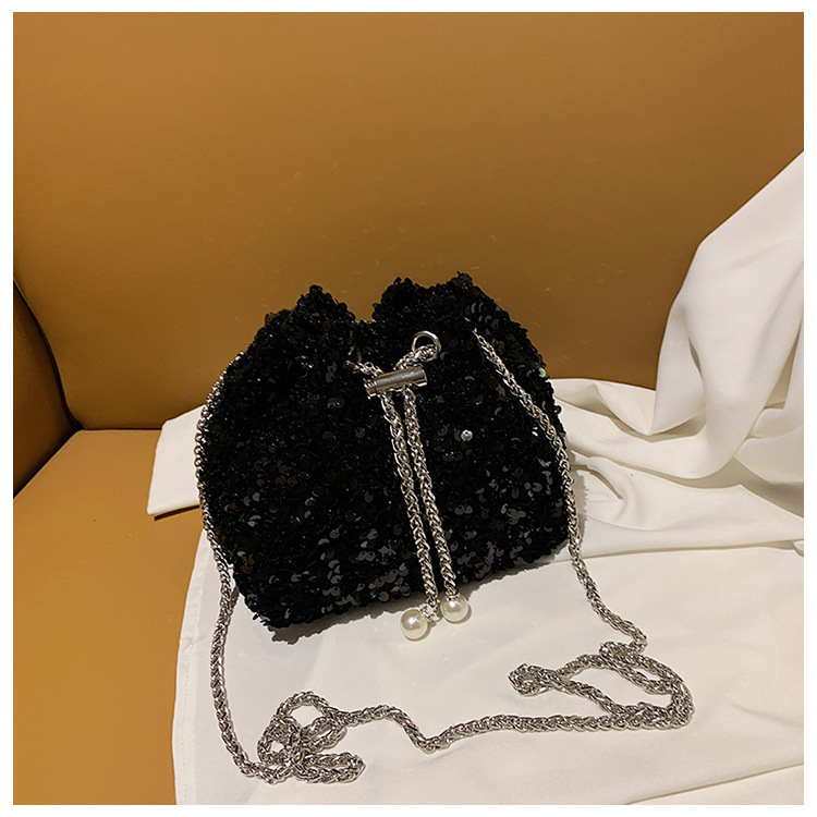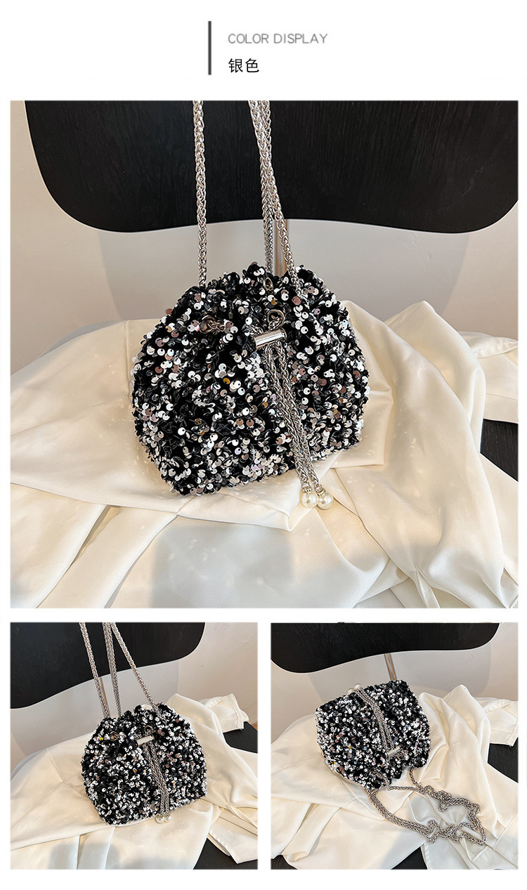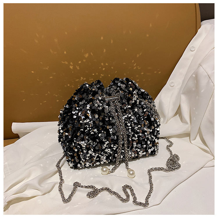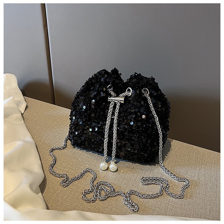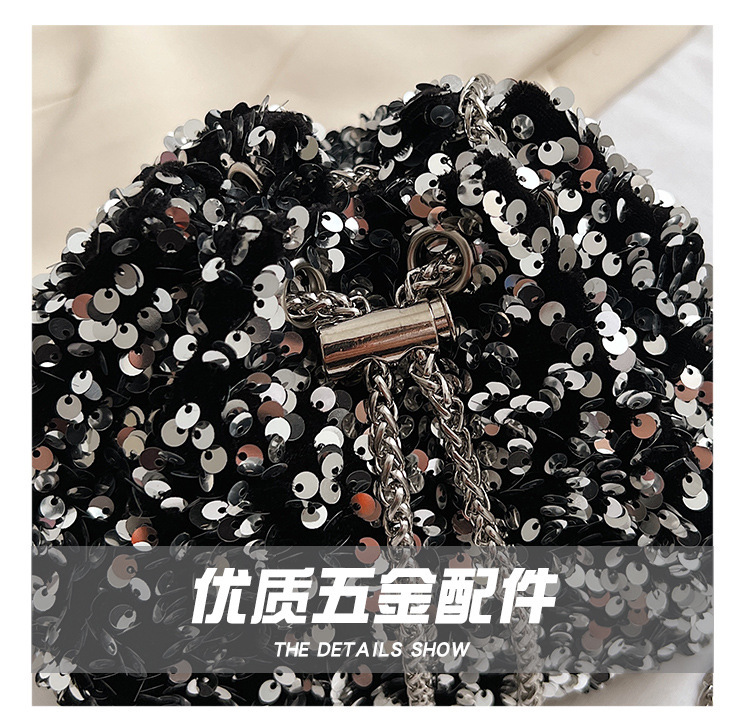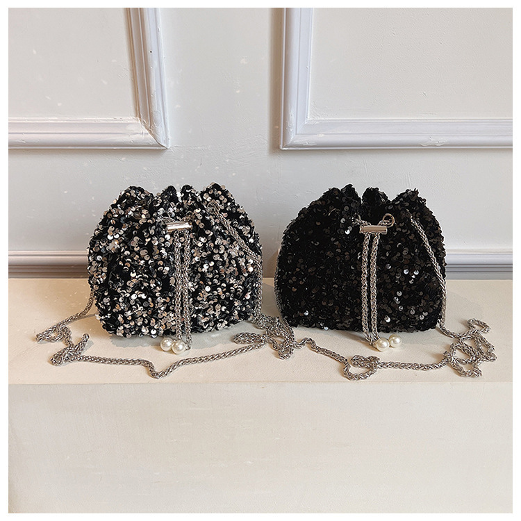 패션 개인화 된 스팽글 백 여성용 2023 새로운 한국 버킷 백 세련된 숄더백 트렌디 한 크로스바디 이브닝 백
