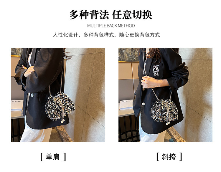 패션 개인화 된 스팽글 백 여성용 2023 새로운 한국 버킷 백 세련된 숄더백 트렌디 한 크로스바디 이브닝 백스토어 가기