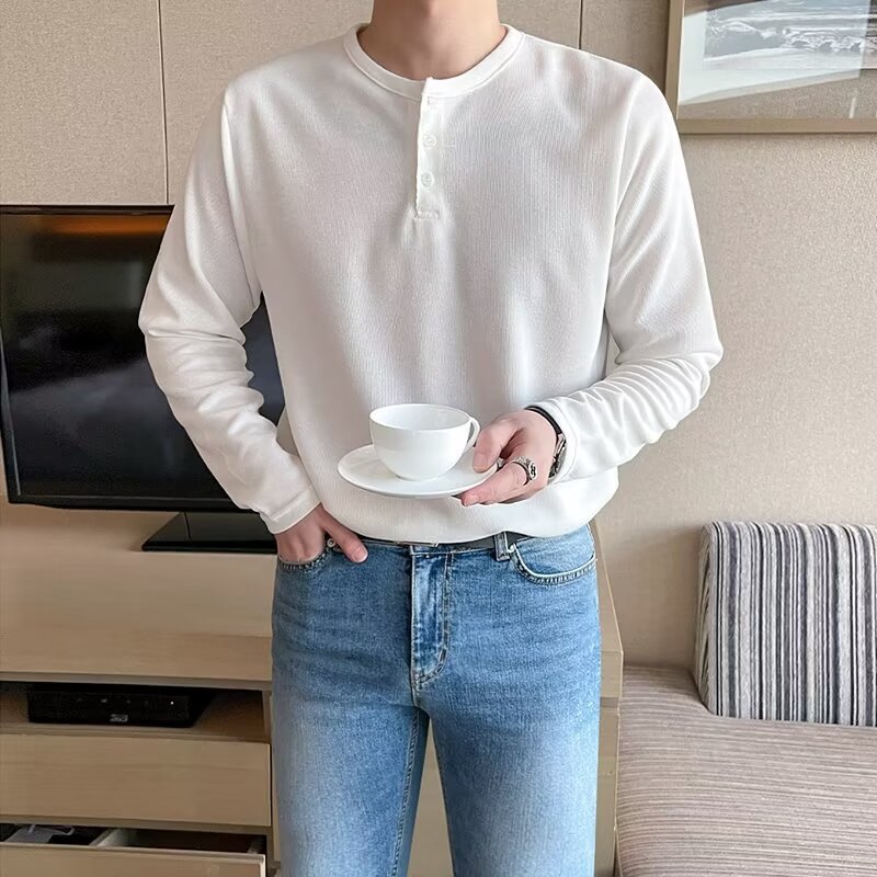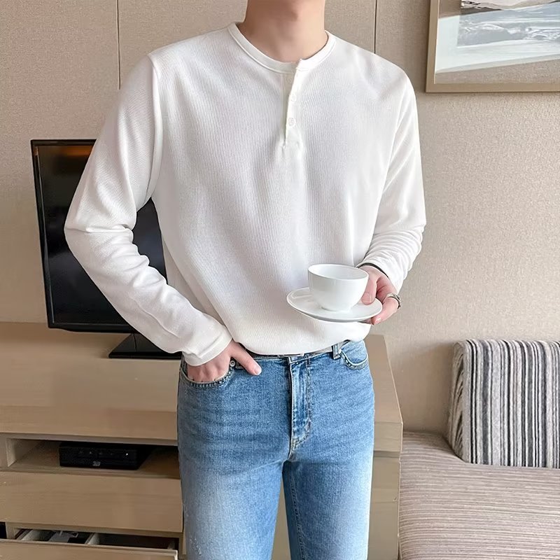 2023 가을 탑 한국 느슨한 스몰 브이넥 베이스 셔츠 남성용 긴팔 티셔츠 트렌디 잘생긴 니트 티셔츠 트렌디스토어 가기