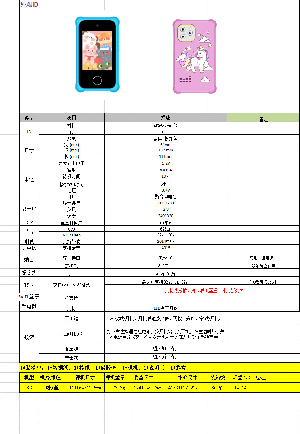 • S5 핑크 유니콘 터치스크린