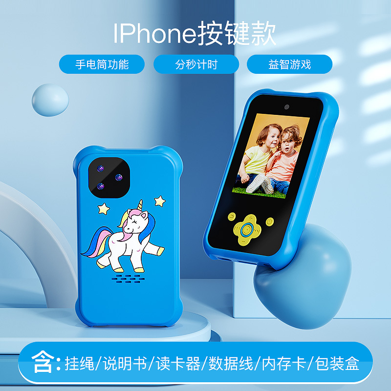 새로운 아이들 스마트 터치 폰 유니콘 장난감 크로스 미러 미니 만화 디지털 휴대 전화 2.8 인치 HD스토어 가기