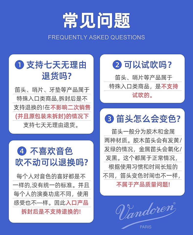 프랑스 Vandoren 곡선 Delin 클라리넷 블랙 튜브 휘슬 드롭 B 조정 수입 블루 박스 호루라기 초급 2.5 3 번스토어 가기