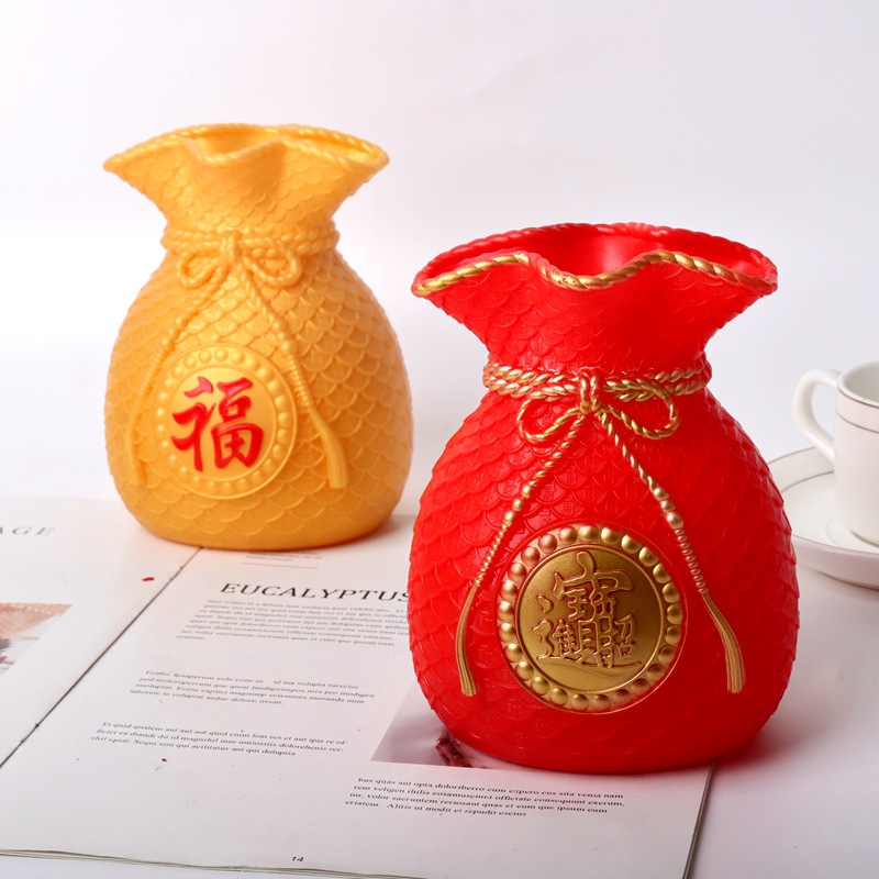 행운의 가방 꽃병 돈 가방 밀 귀 플라스틱 꽃병 창조적 인 공예 거실 입구 와인 캐비닛 장식품 장식