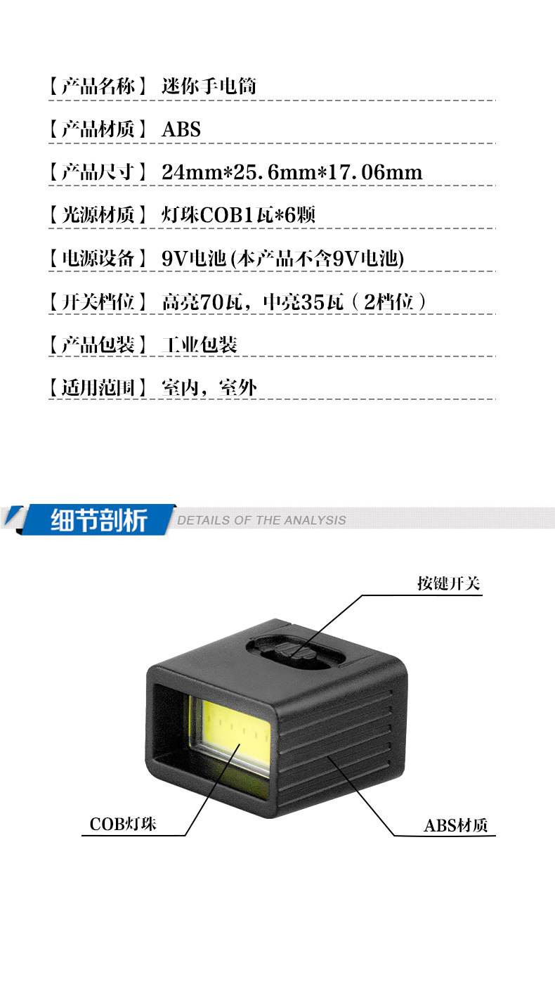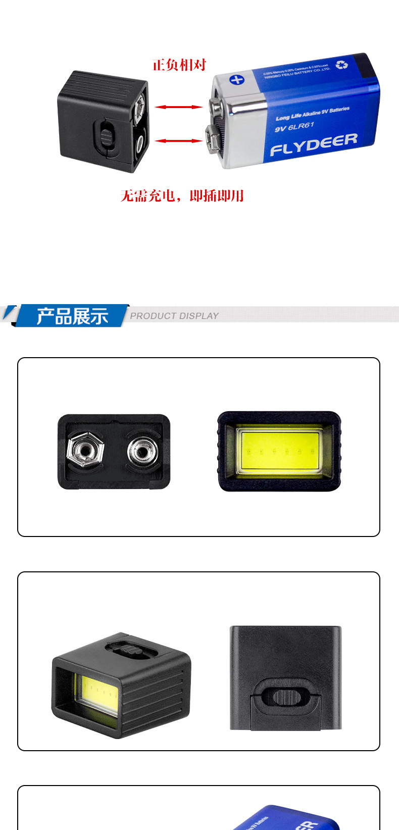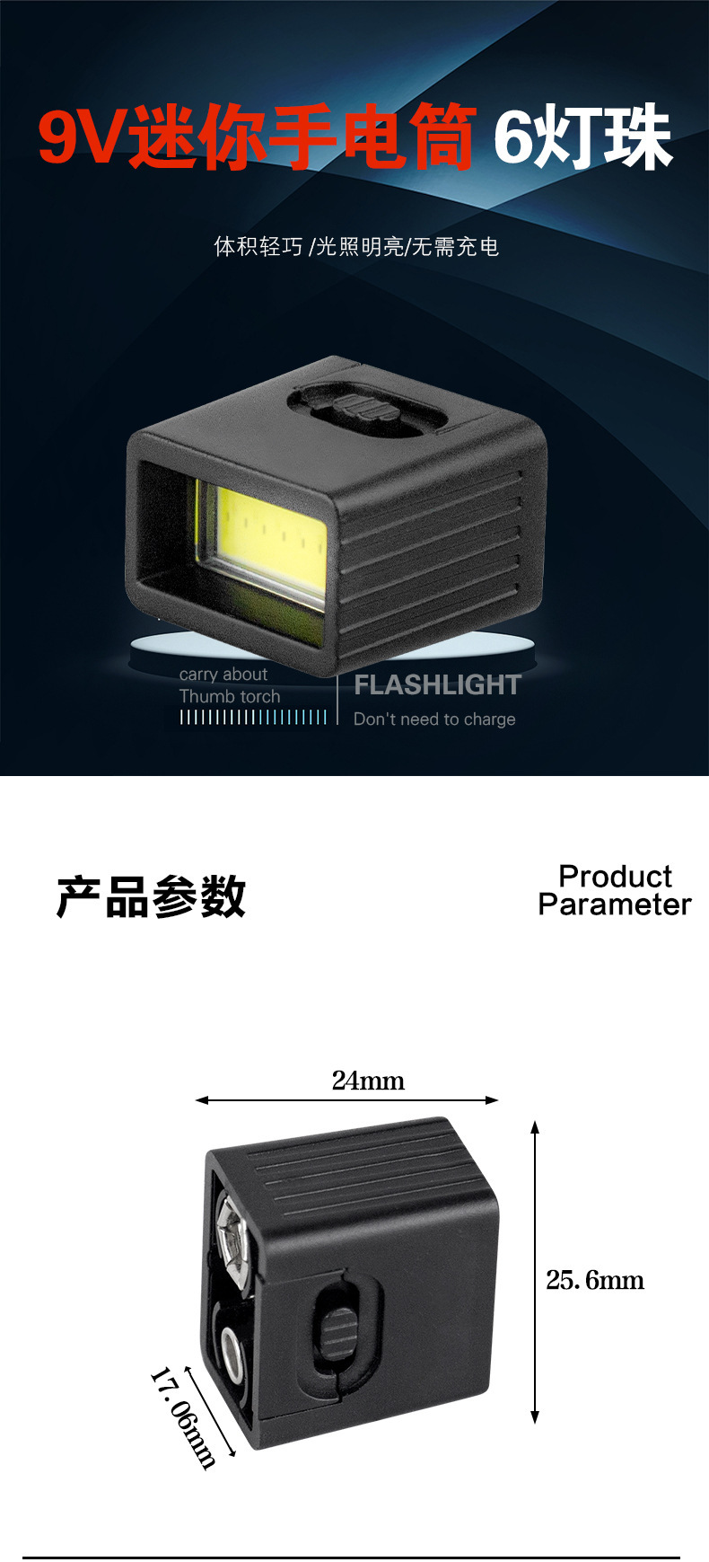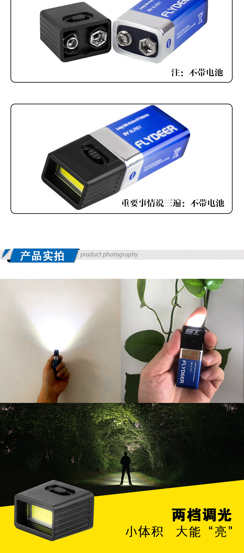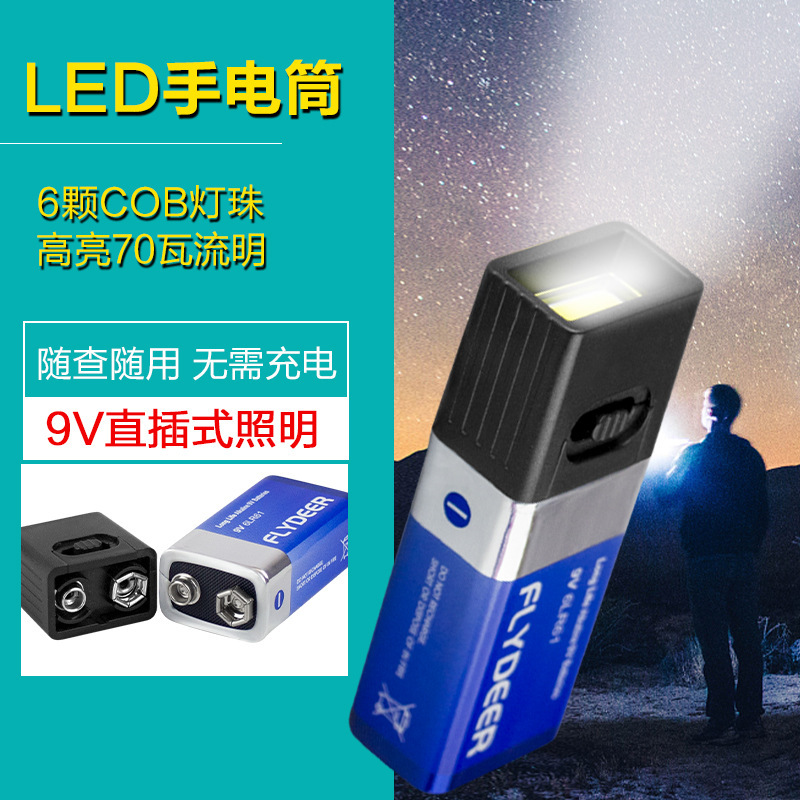 9V 배터리 손전등 9V 미니 LED 키 라이트 6F22 배터리 강력 조명 COB 실외 조명 프로모션 손전등스토어 가기