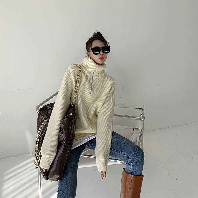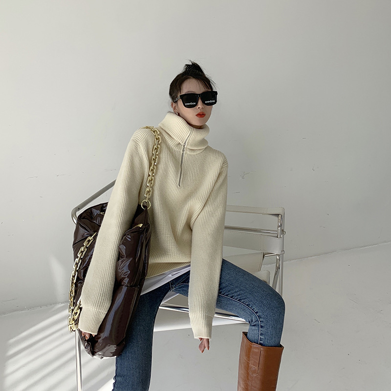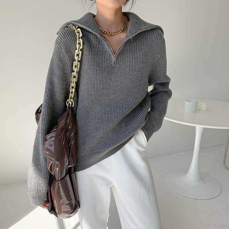 가을과 겨울 2024 새로운 지퍼 스웨터 니트 스웨터 여성용 루즈 아우터베이스 스타일 톱 디자인 센스 틈새