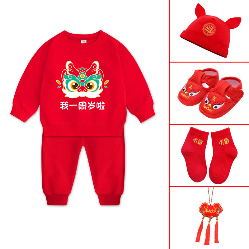 • 봄과 가을-롱바오 귀여운 소녀 + 4종 세트--빨간색 + 빨간색