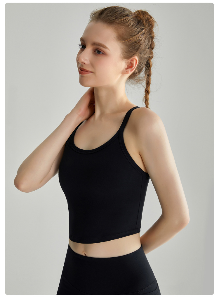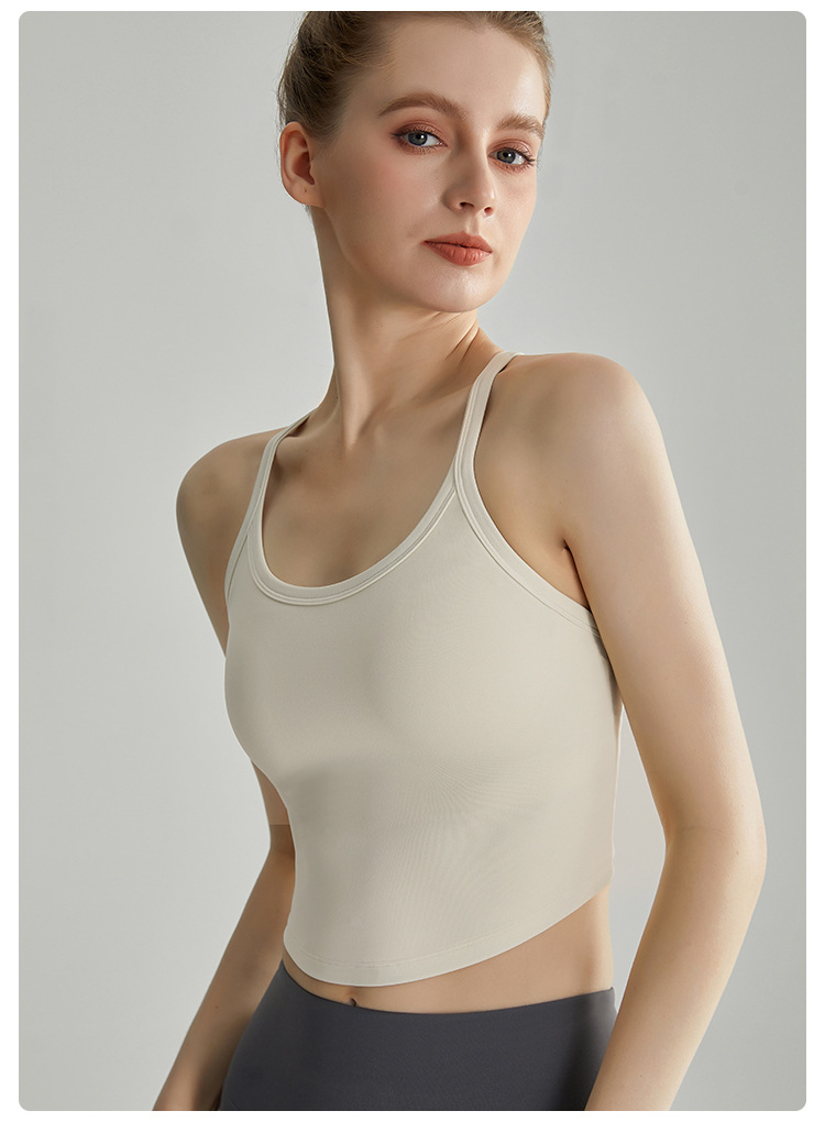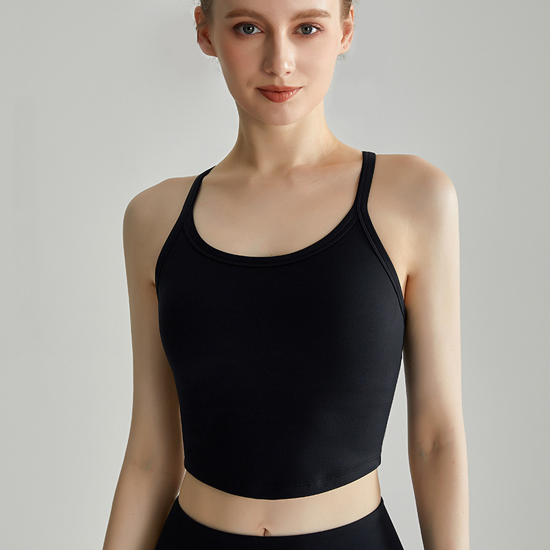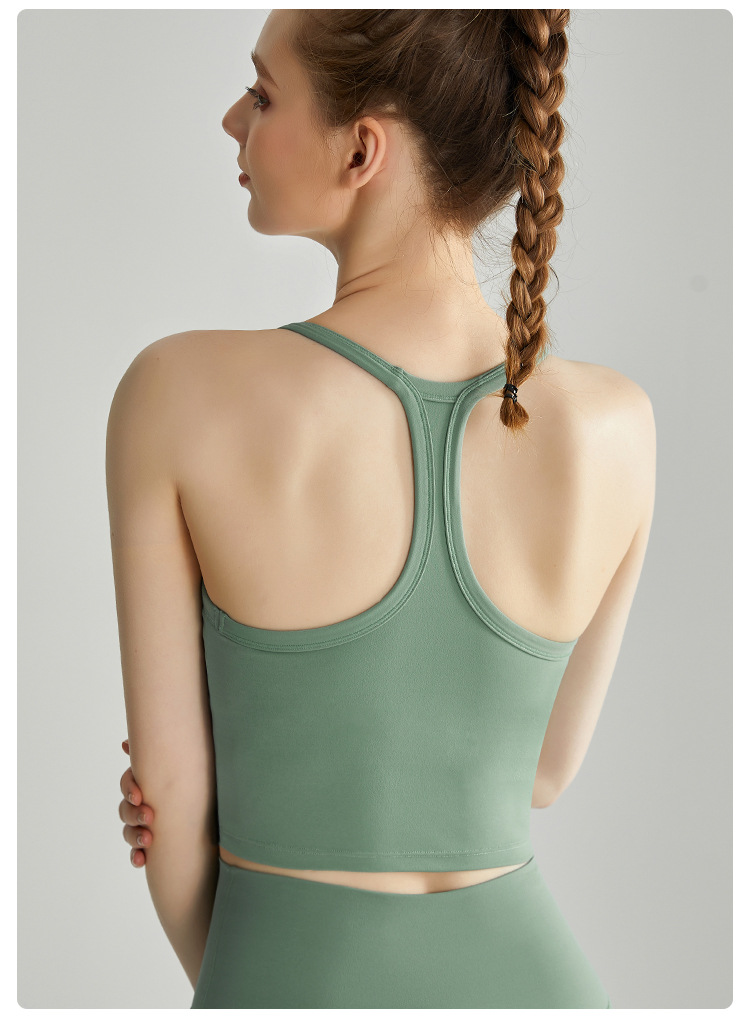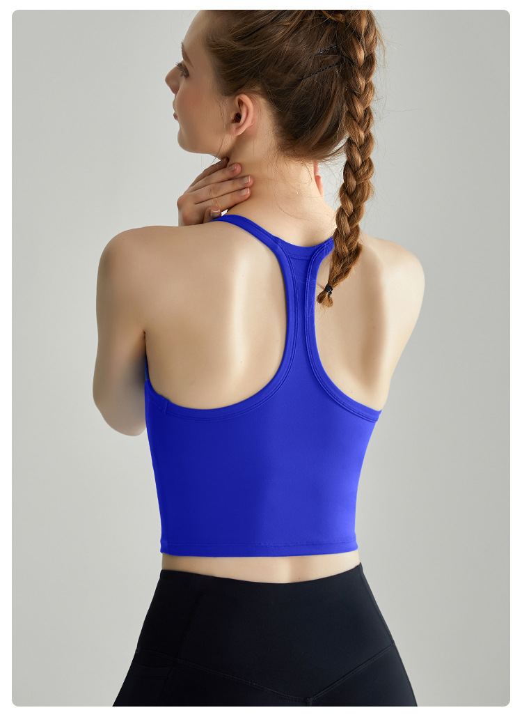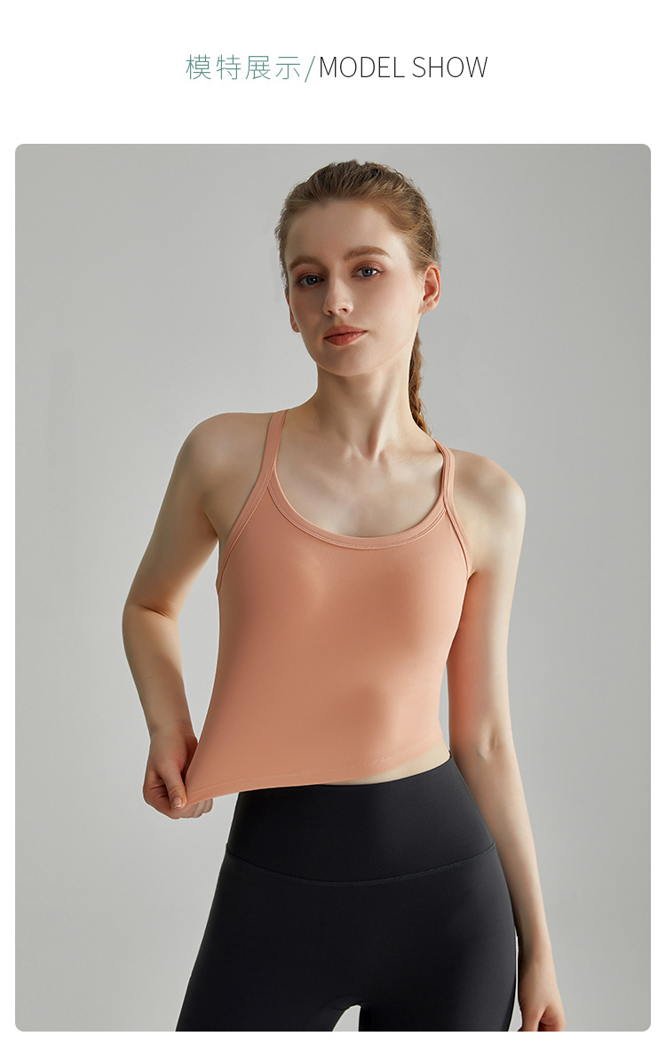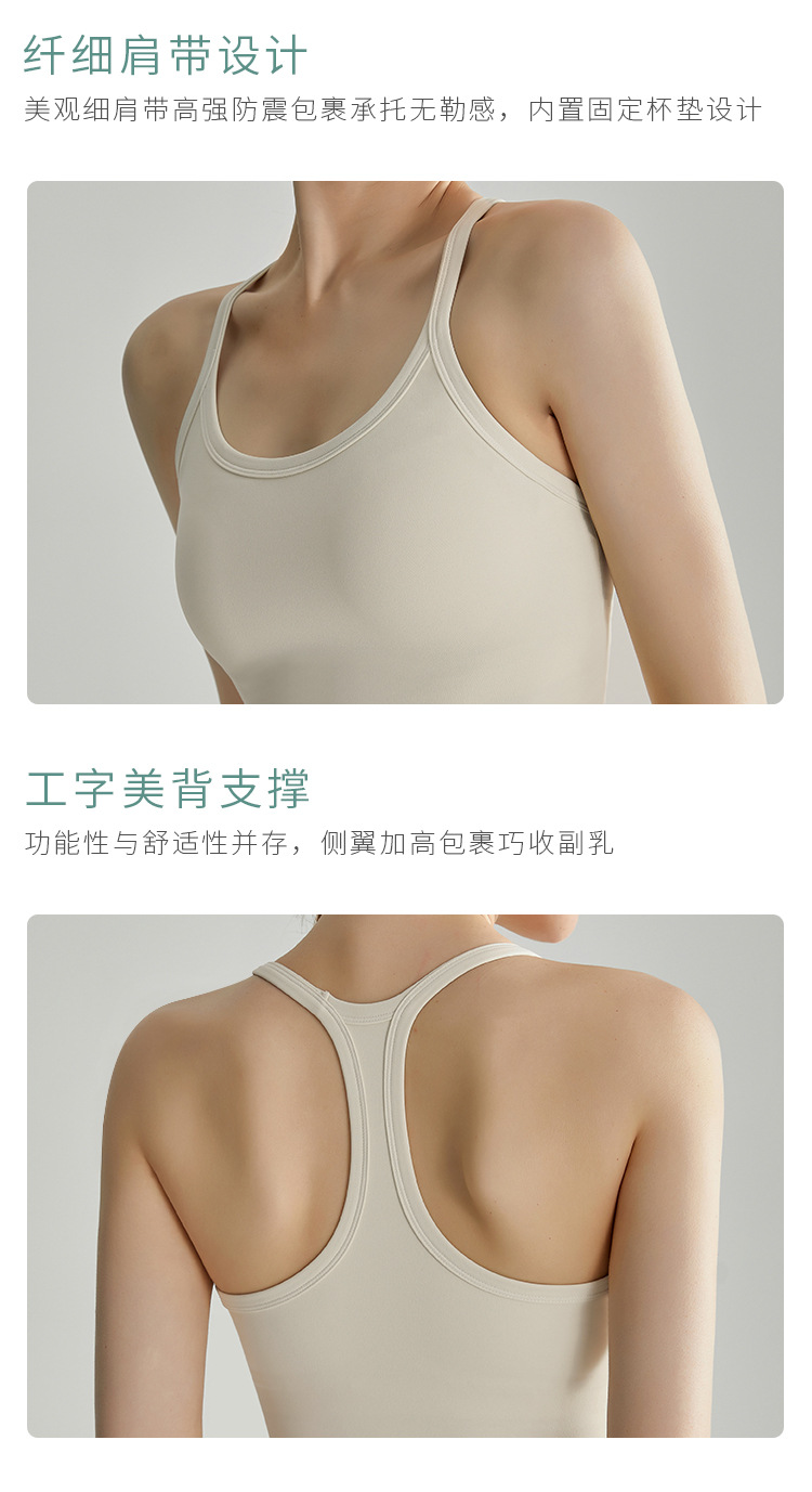 LAHN 스포츠 속옷 얇은 어깨 스트랩 통합 고정 가슴 패드 외부 착용 I-back 고강도 피트니스 조끼