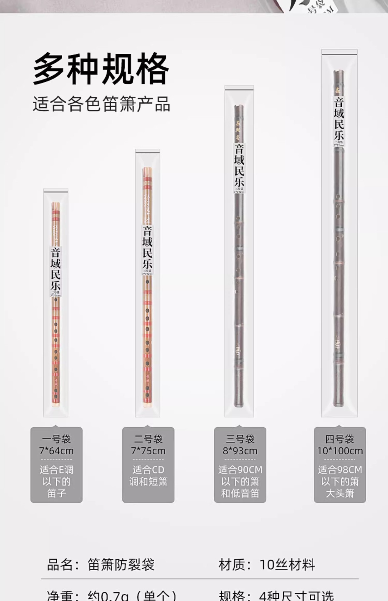 사운드 도메인 플루트 안티 크래킹 보호 가방 대나무 플루트 밀봉 가방 안티 크래킹 방습 떨어지는 먼지 적용 대나무 플루트 동굴 플루트 악기스토어 가기