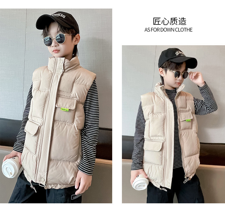 소년 두꺼운 조끼 가을과 겨울 튀김 거리 대형 어린이 겨울 옷 소년 다운 면 겨울 조끼 2023 New