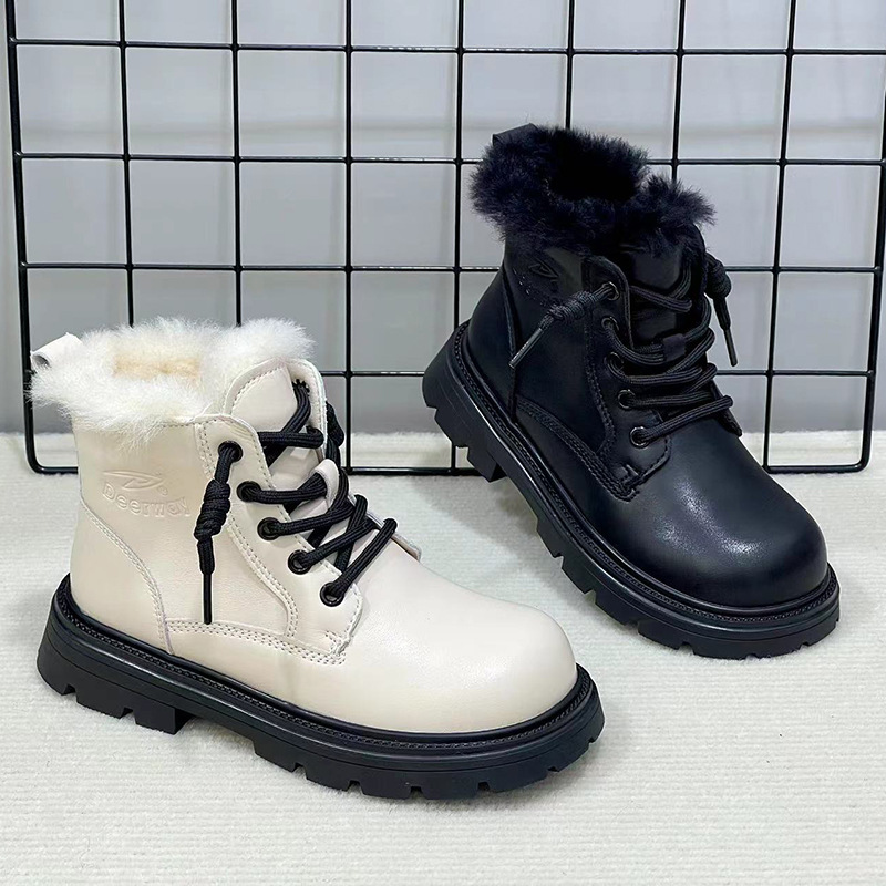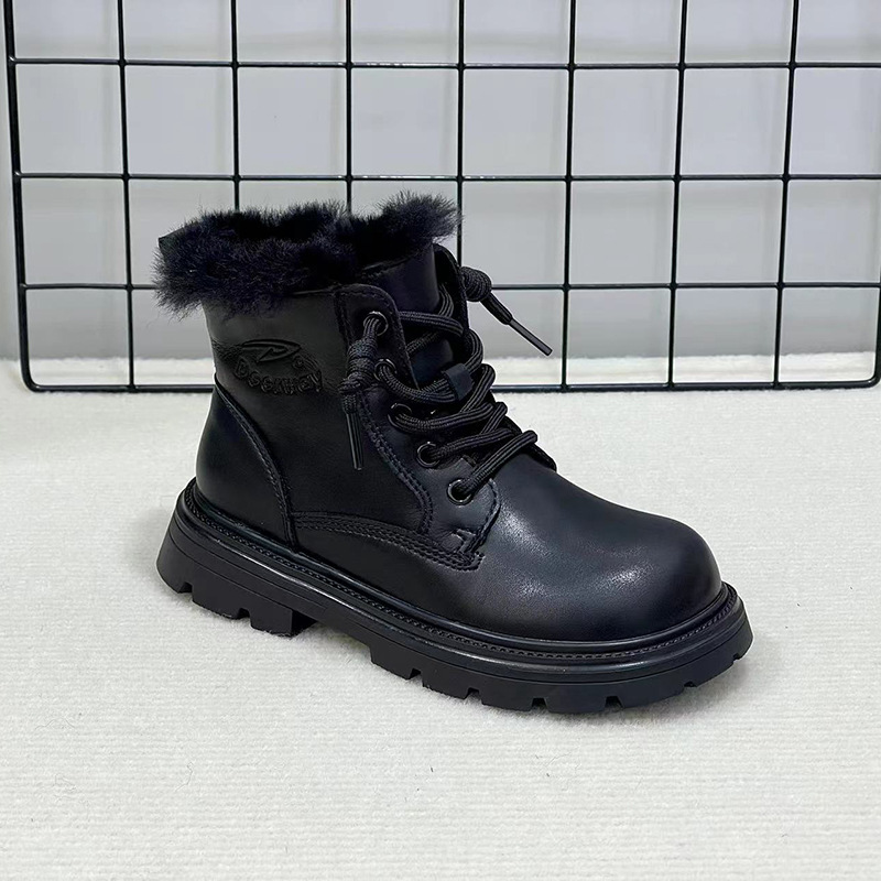 Delghui 두면 마틴 부츠 2024 겨울 새로운 어린이 부츠 소녀 기모 짧은 부츠 영국 스타일의 따뜻한 가죽 부츠