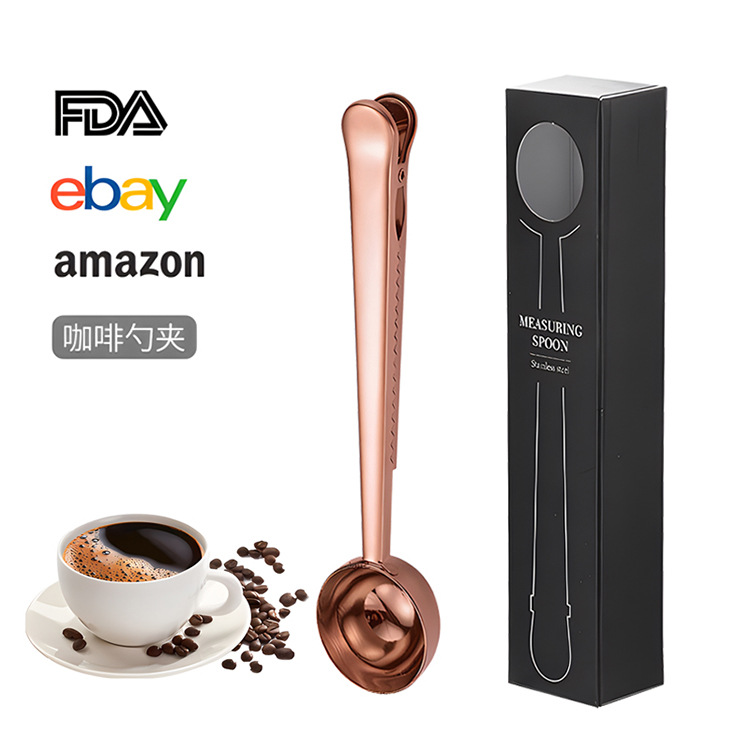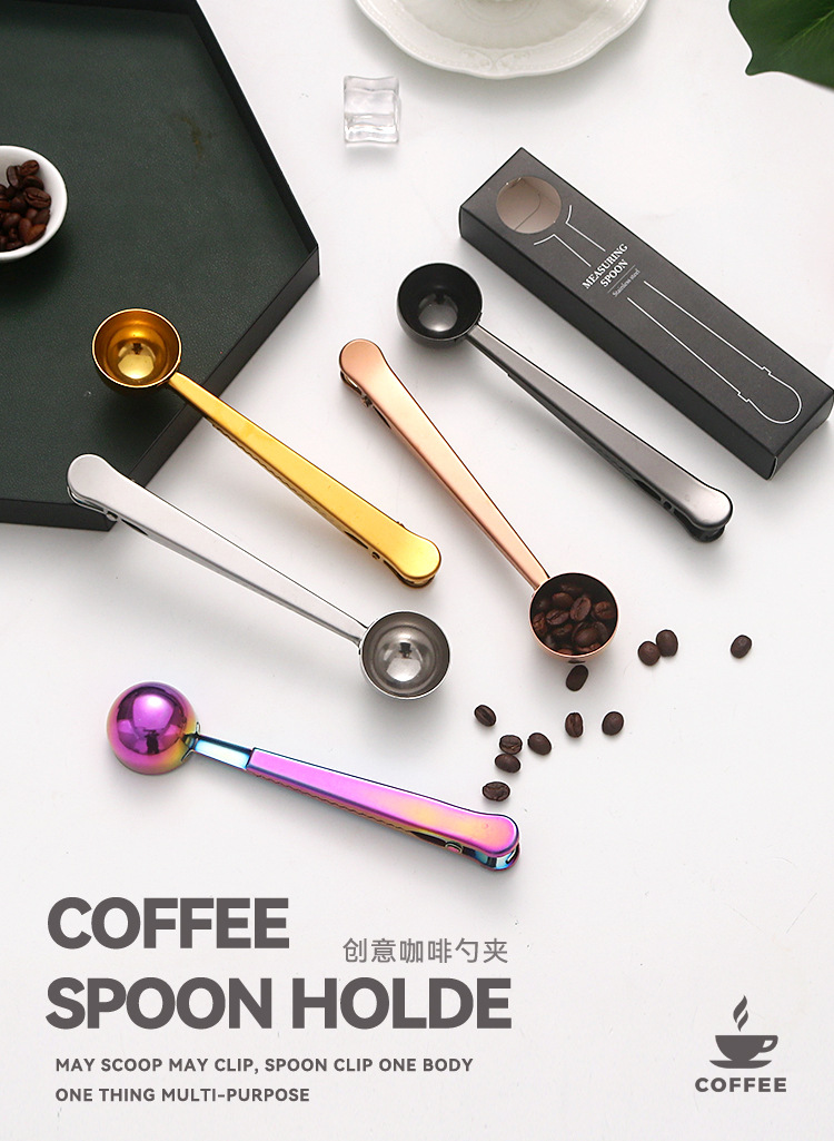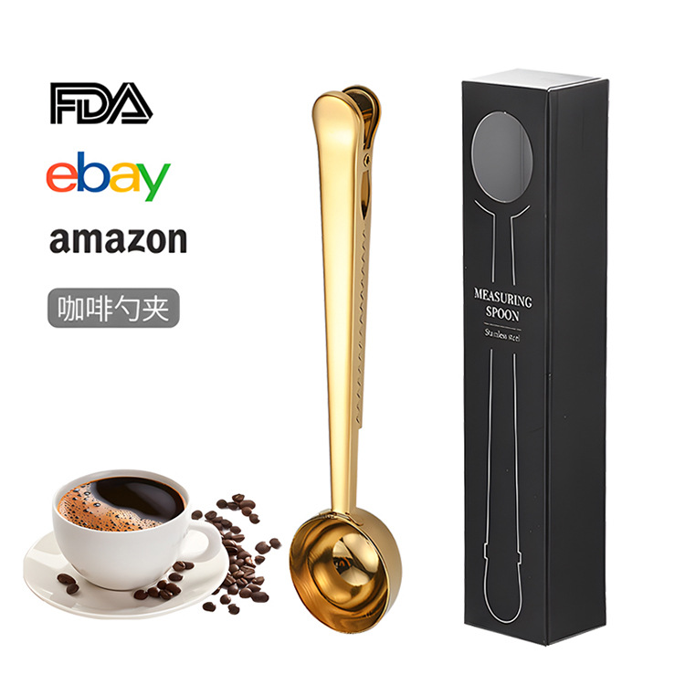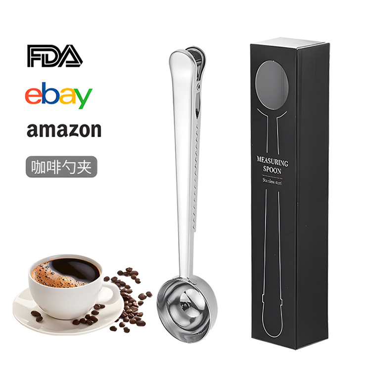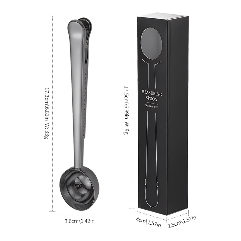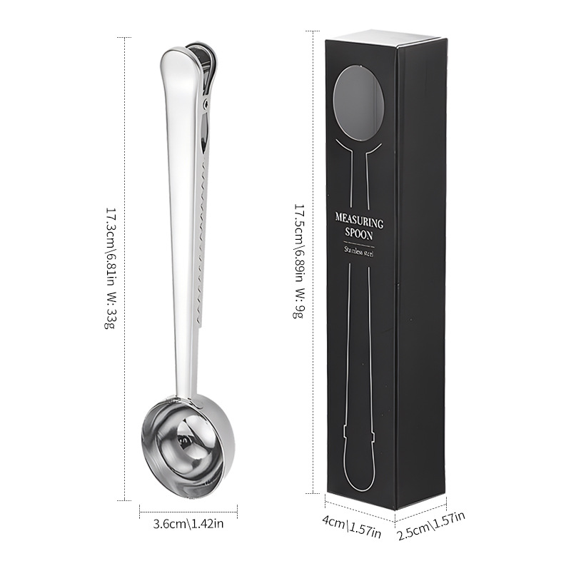 크로스보더 스테인리스 계량스푼 박스형 커피빈 계량스푼 다기능 분유스푼 창의적인 간식 밀봉 고정 클립