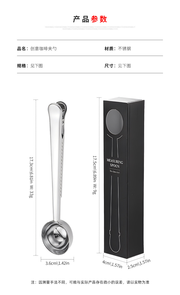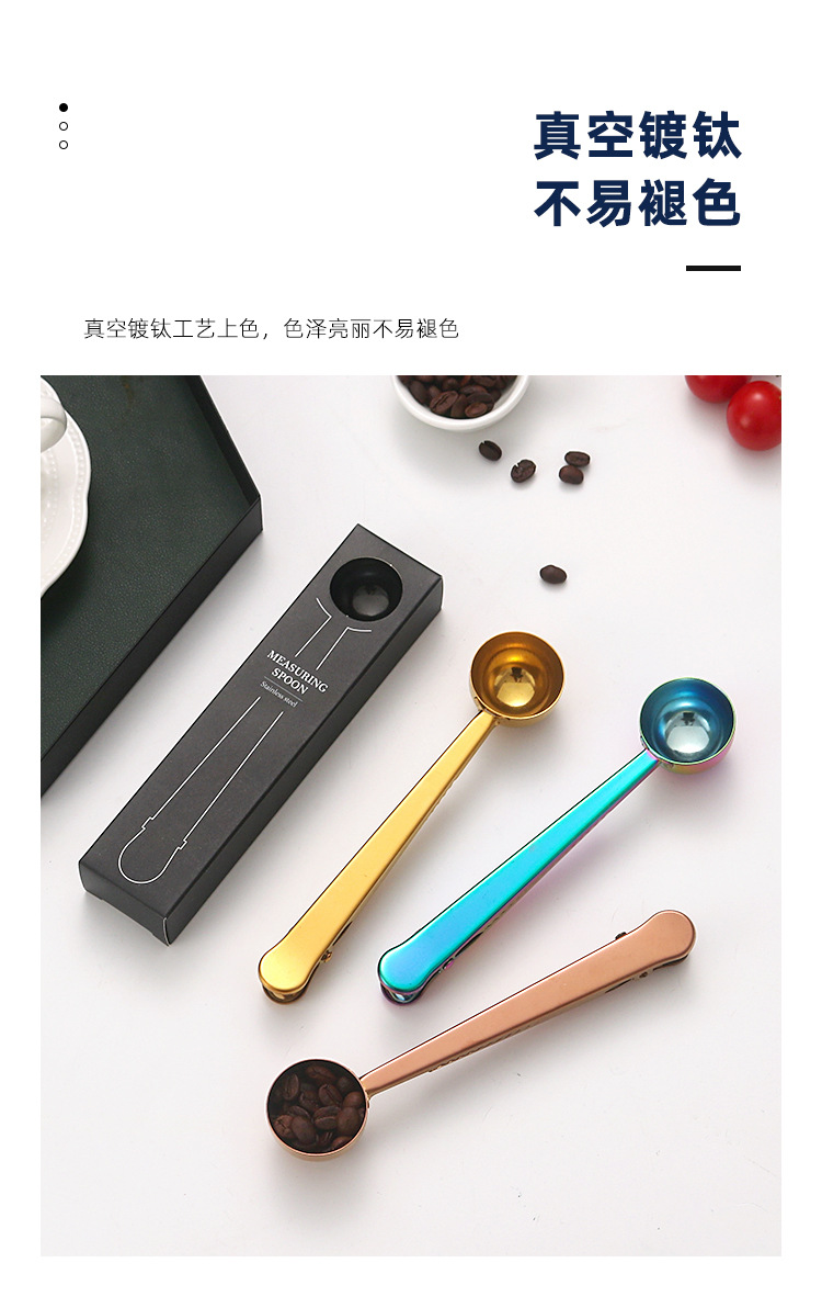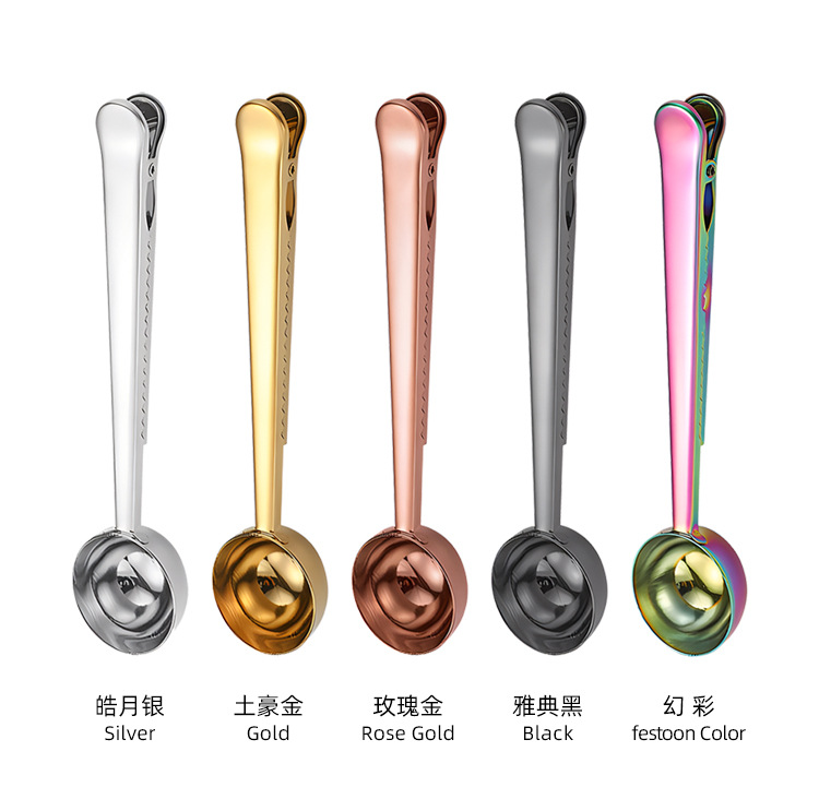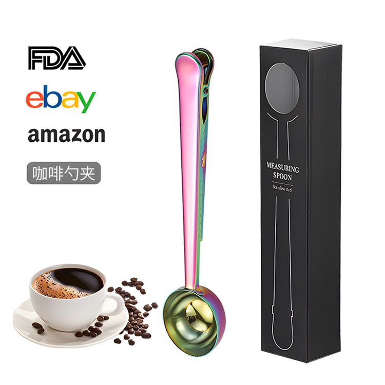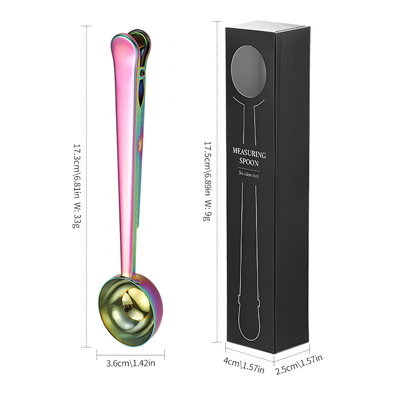 크로스보더 스테인리스 계량스푼 박스형 커피빈 계량스푼 다기능 분유스푼 창의적인 간식 밀봉 고정 클립