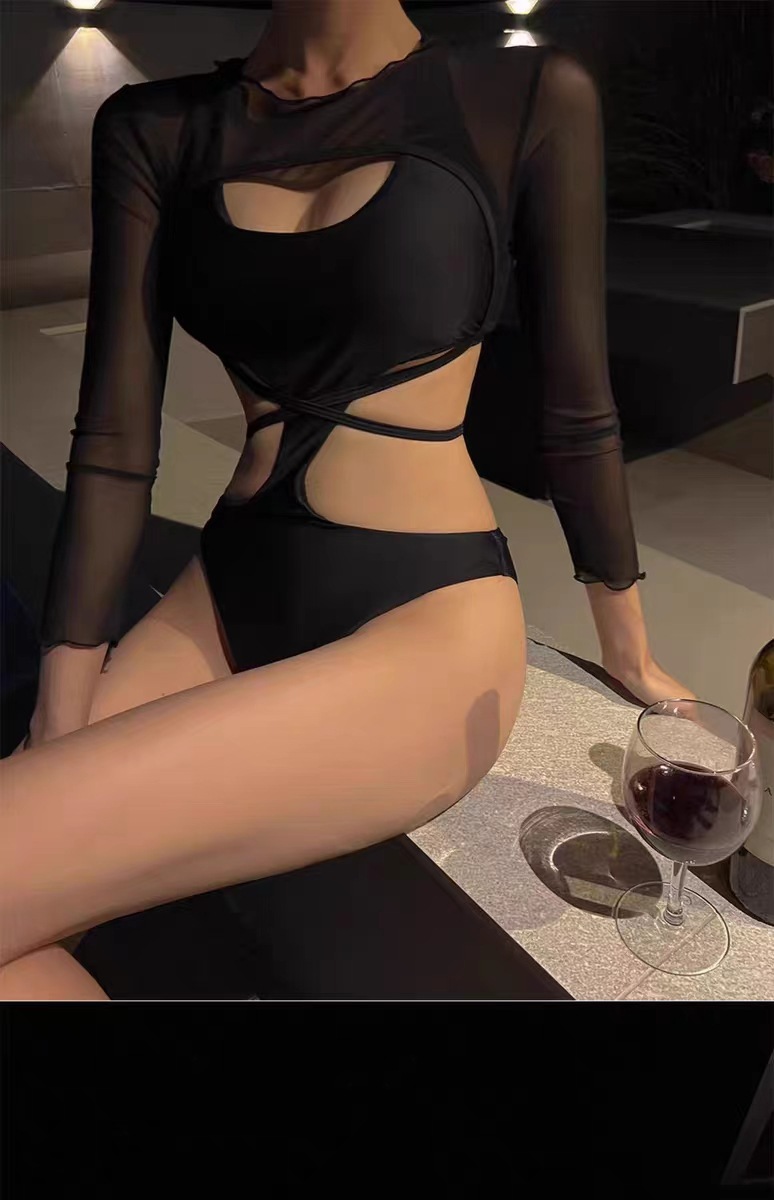 2024 새로운 섹시한 원피스 순수한 욕망 작은 가슴 긴팔 메쉬 블라우스 수영복 여성용 스파이스 걸스 관점 수영복스토어 가기