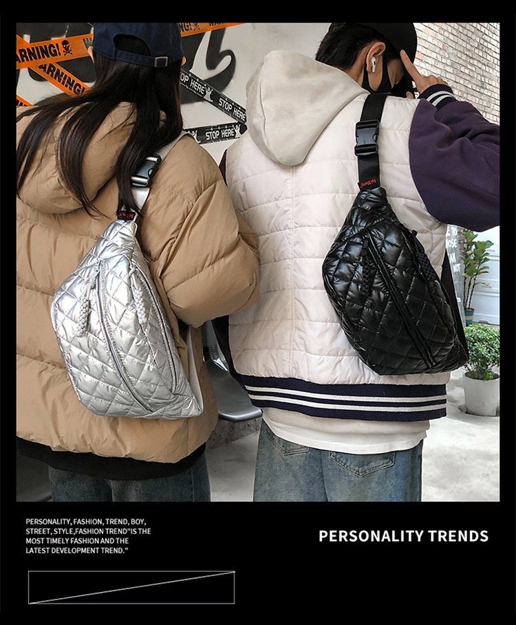 2023 겨울 신상품 대용량 유행 남성 및 여성용 크로스바디 백 가슴 가방 다운 코튼 백 여성 숄더백
