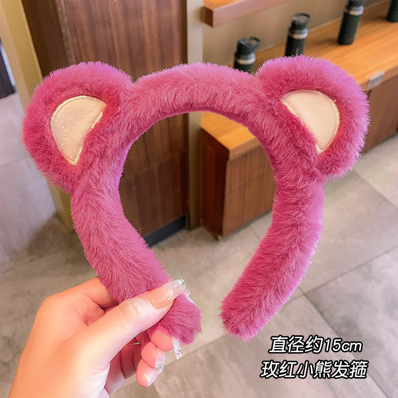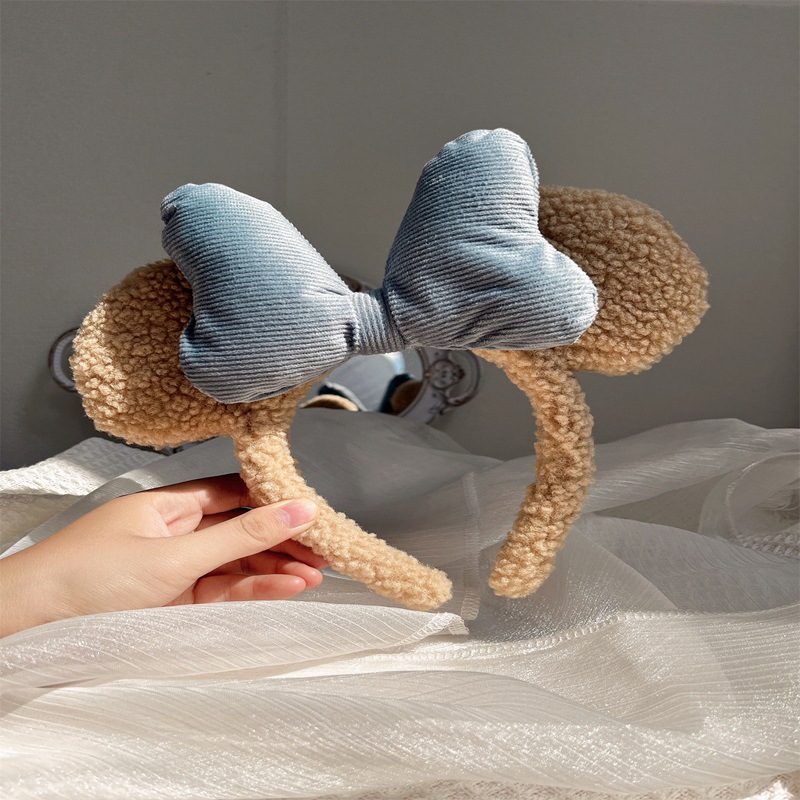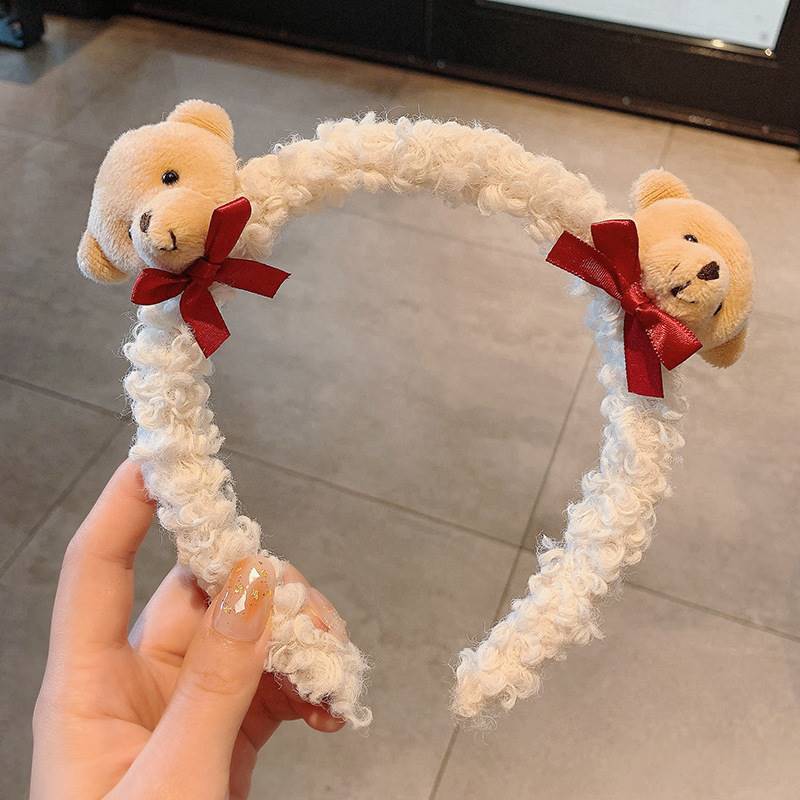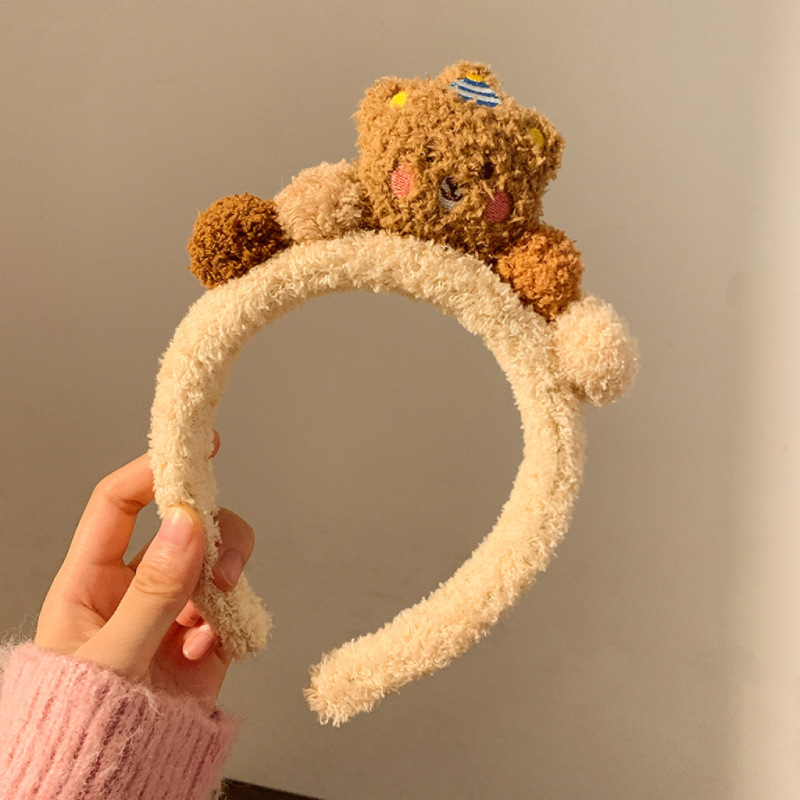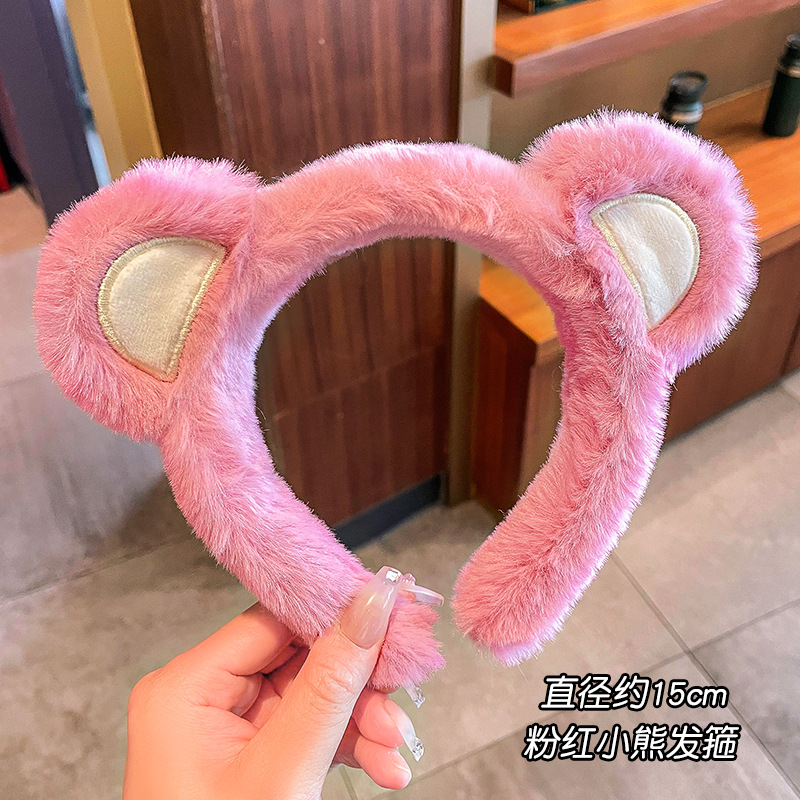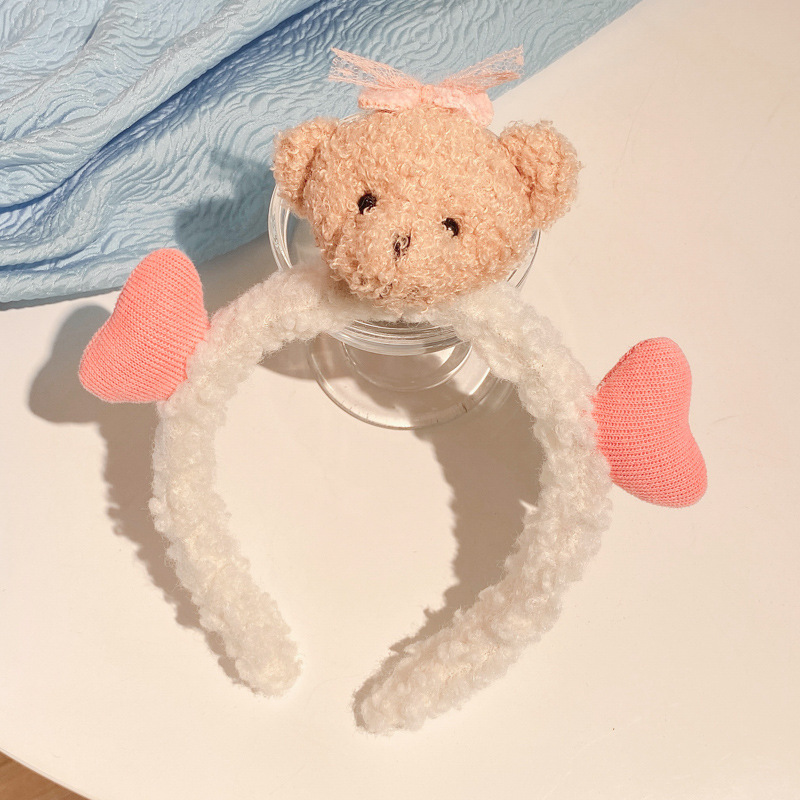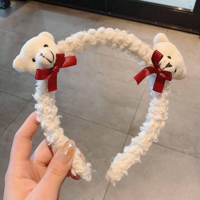 귀여운 격자 무늬 활 곰 봉제 헤어 밴드 여성용 만화 세안 압력 헤어 밴드 미끄럼 방지 헤어 클립 헤어 번들 모자