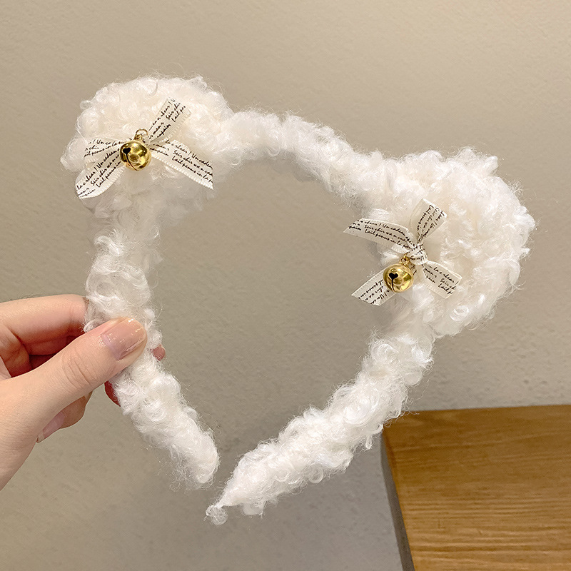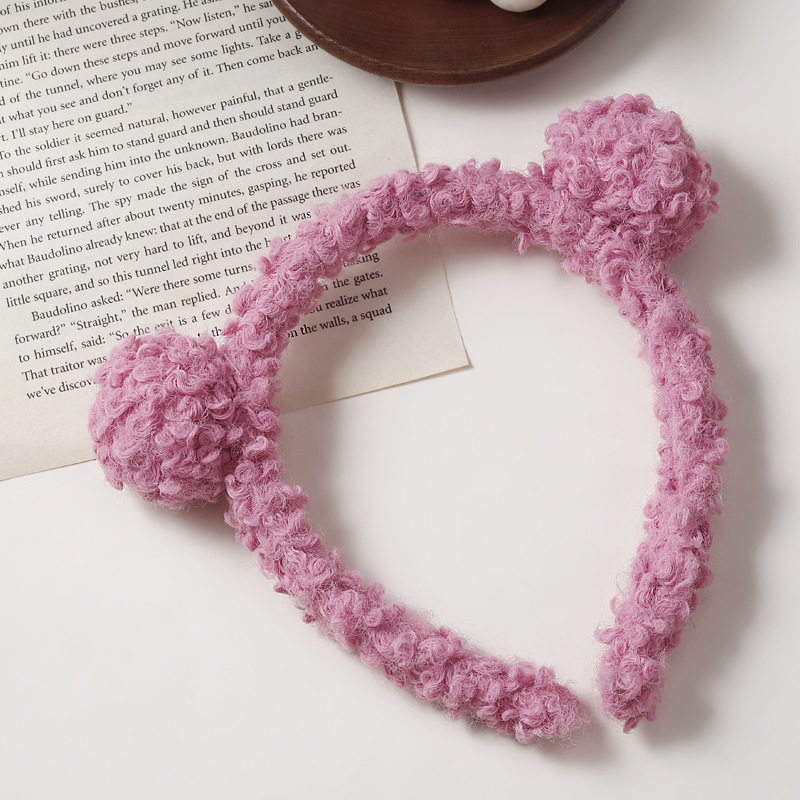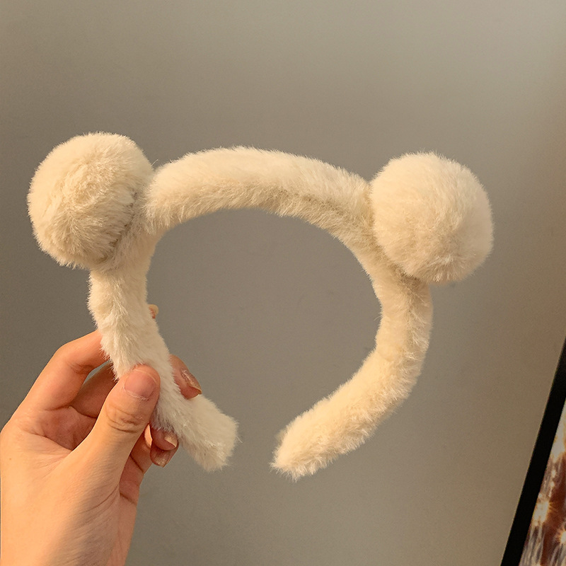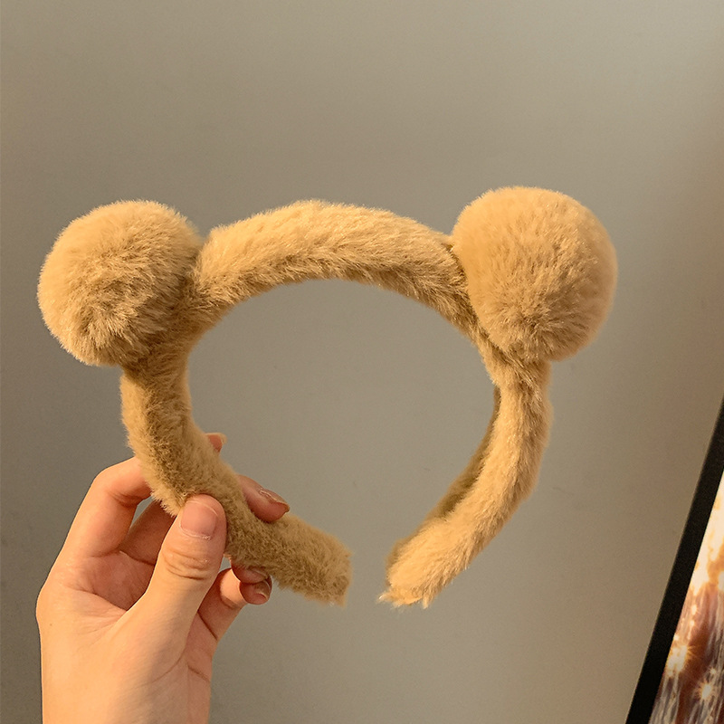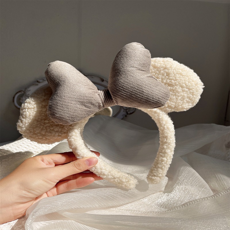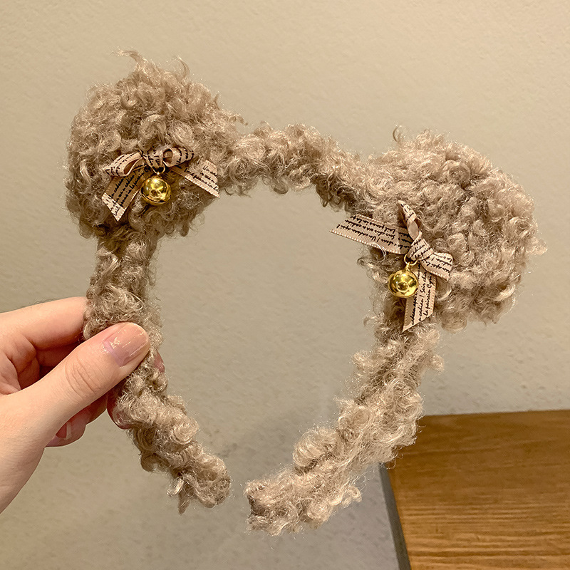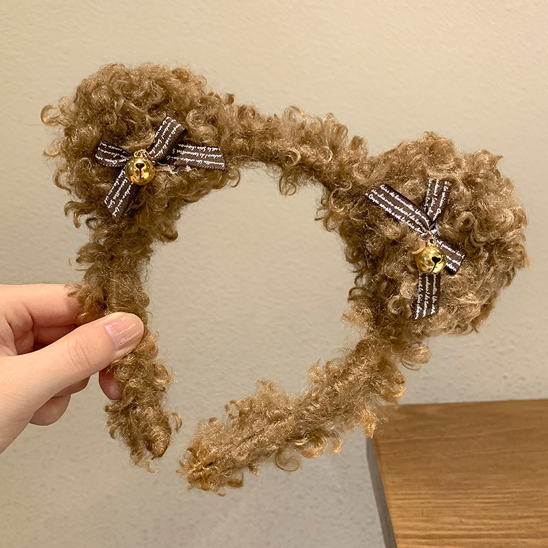 귀여운 격자 무늬 활 곰 봉제 헤어 밴드 여성용 만화 세안 압력 헤어 밴드 미끄럼 방지 헤어 클립 헤어 번들 모자