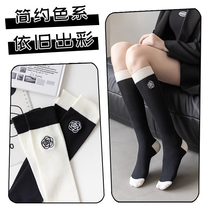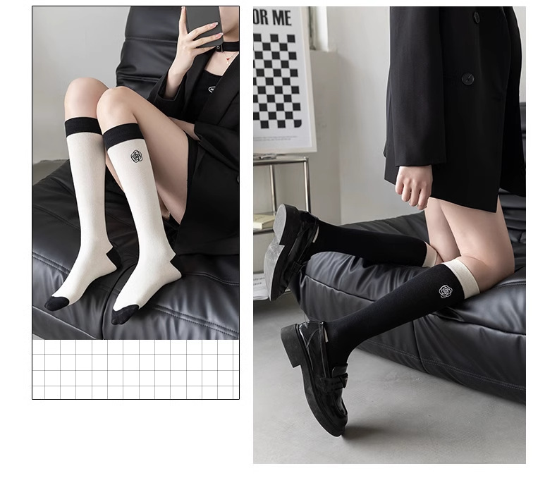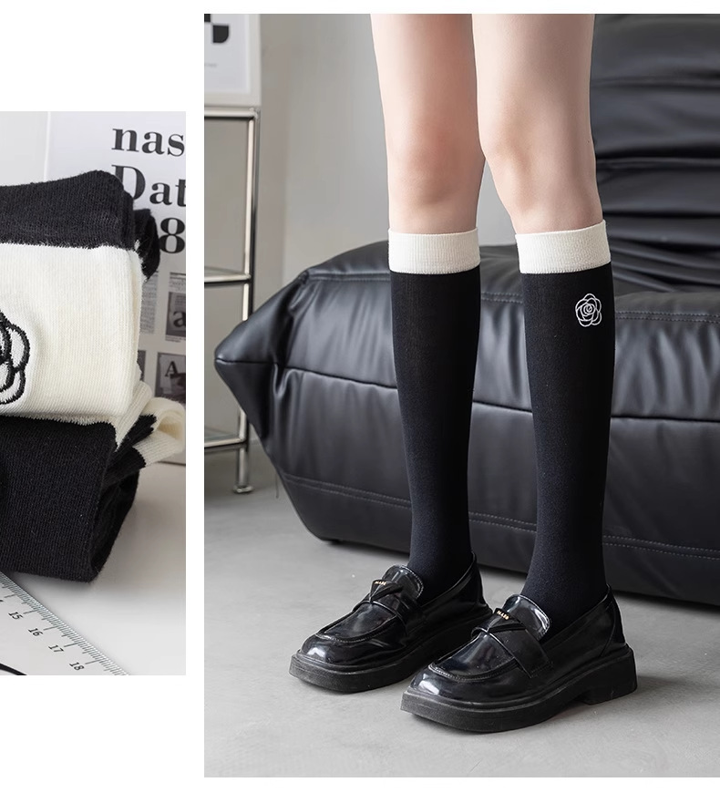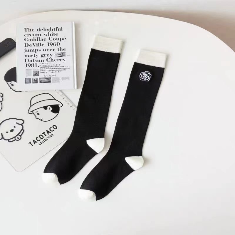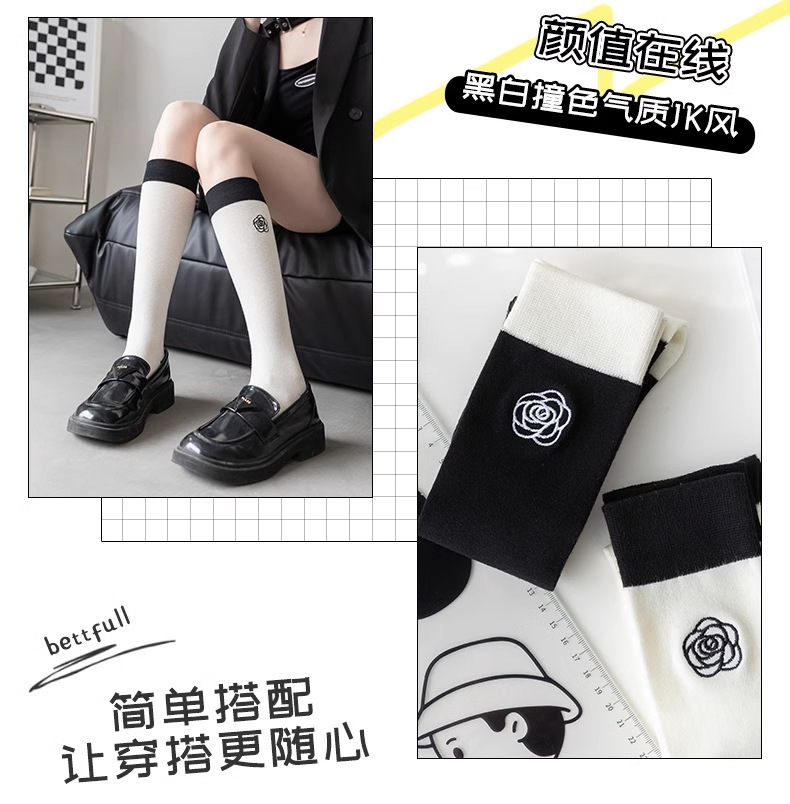 흑백 대비 자수 새끼 양말 바느질 다리 양말 유행 일본 대학 스타일 jk 긴 튜브 및 무릎 양말