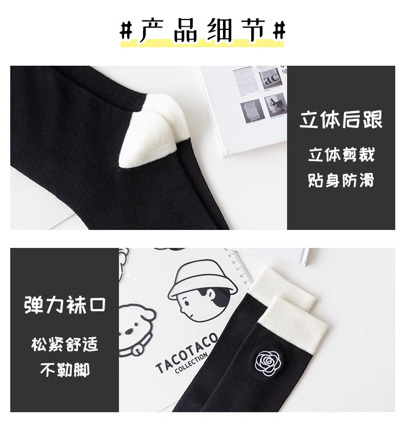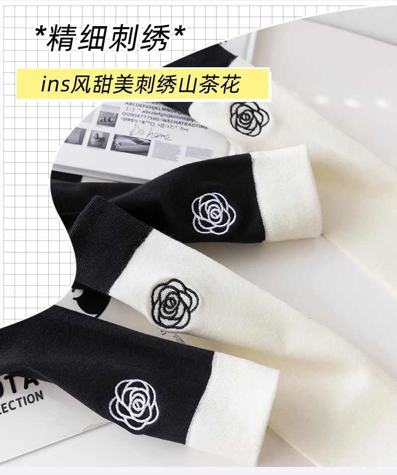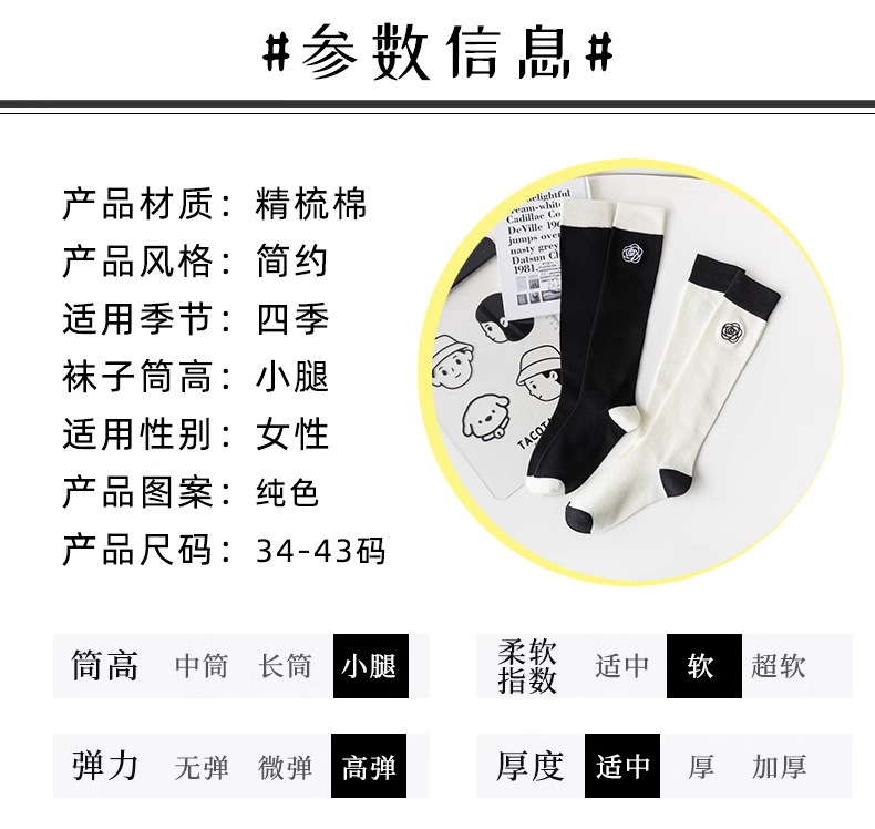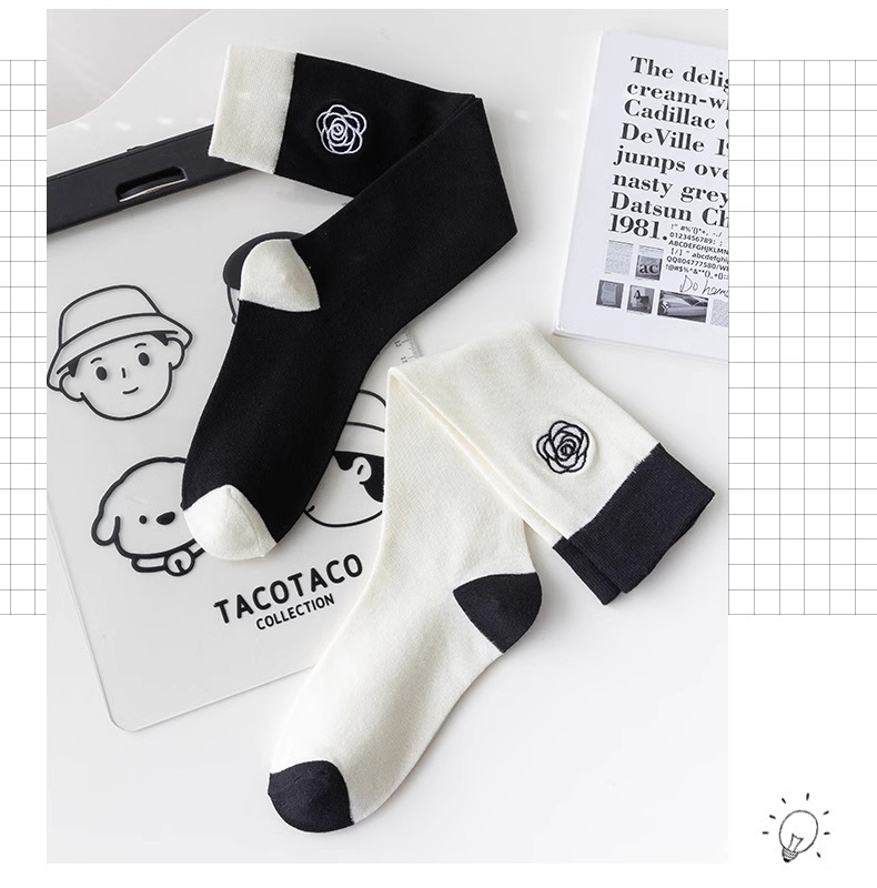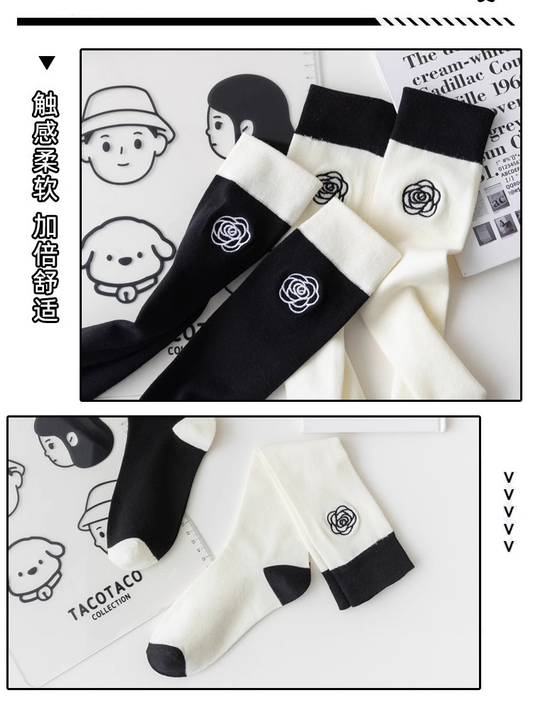 흑백 대비 자수 새끼 양말 바느질 다리 양말 유행 일본 대학 스타일 jk 긴 튜브 및 무릎 양말