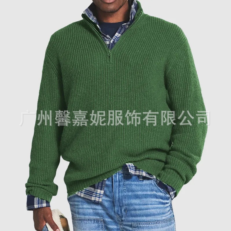 Amazon Independent Station 2025 가을 겨울 새로운 유럽과 미국의 대외 무역 남성 비즈니스 캐주얼 루즈 지퍼 스탠드 칼라 스웨터