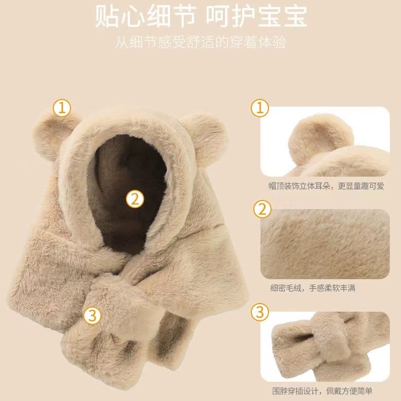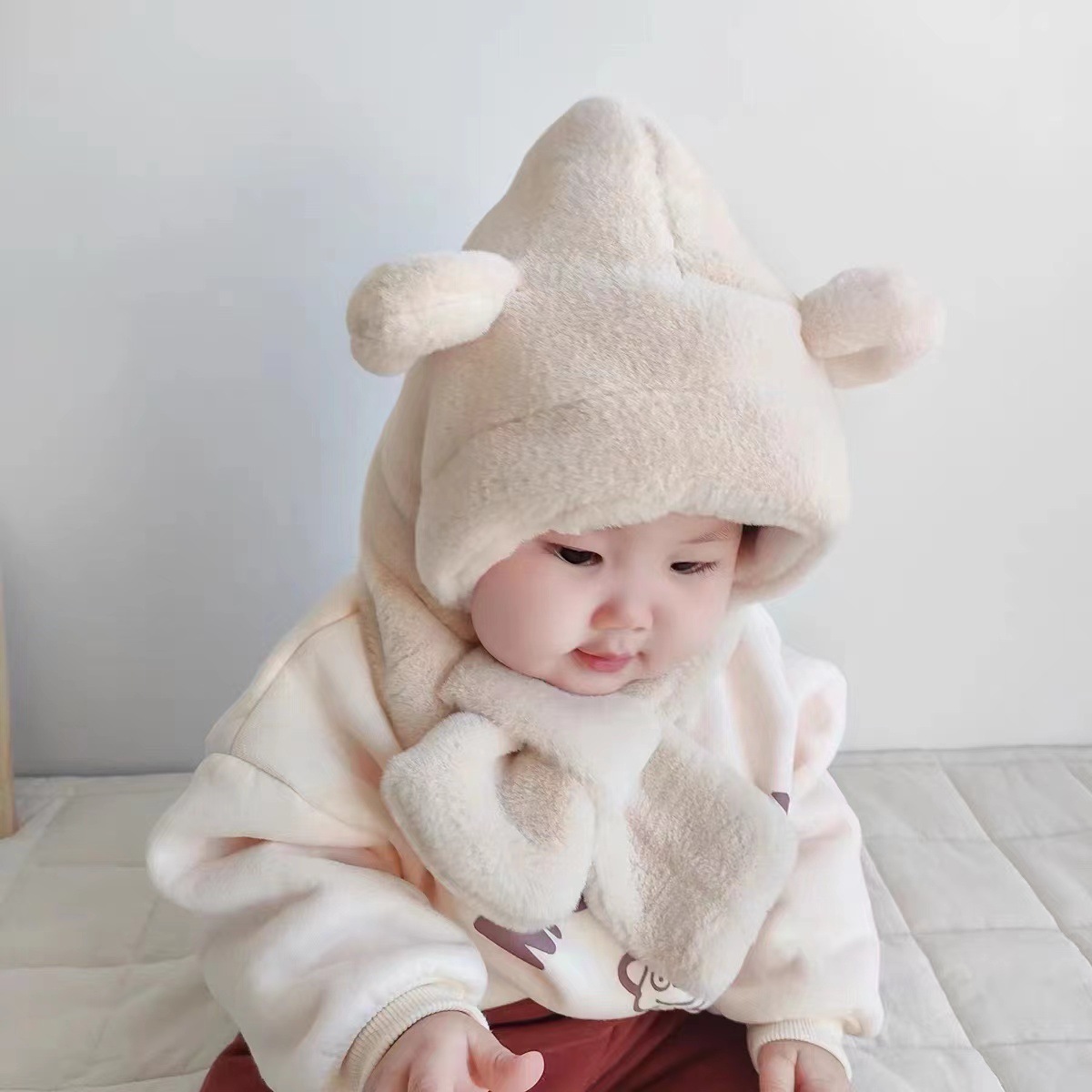 아기 모자와 스카프 올인원 겨울 귀여운 봉제 모자 두꺼운 목 어린이 귀 보호 모자