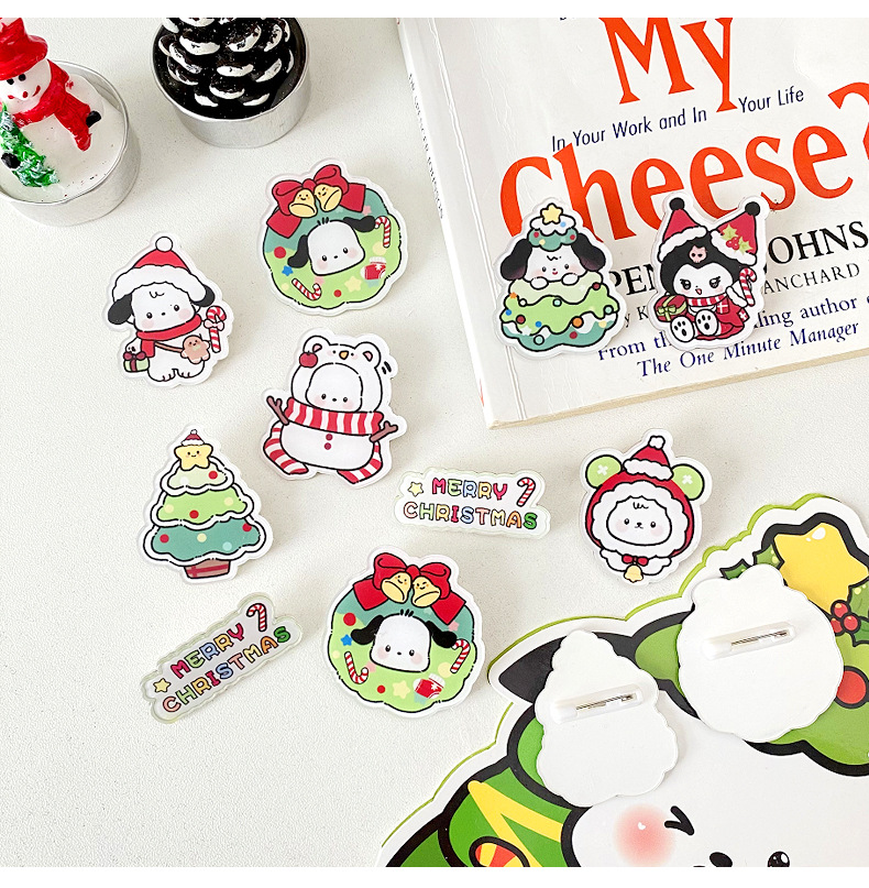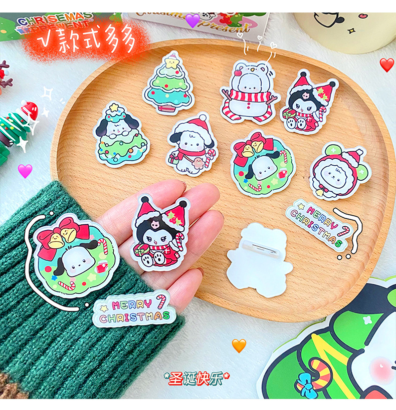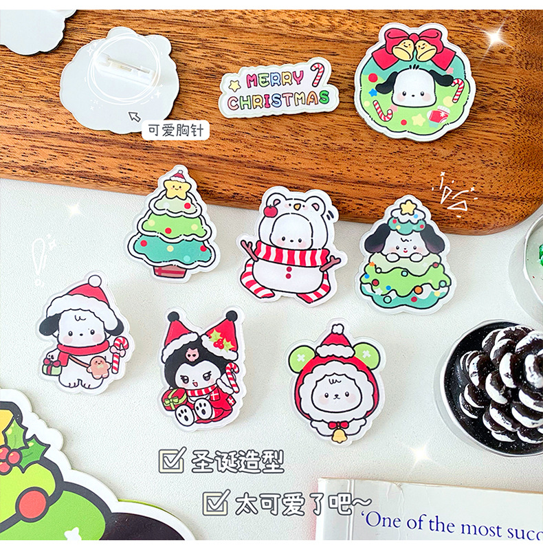 원래 크리스마스 만화 브로치 크리스마스 모자 개 패턴 코트 스웨터 핀 커플 배지 액세서리스토어 가기