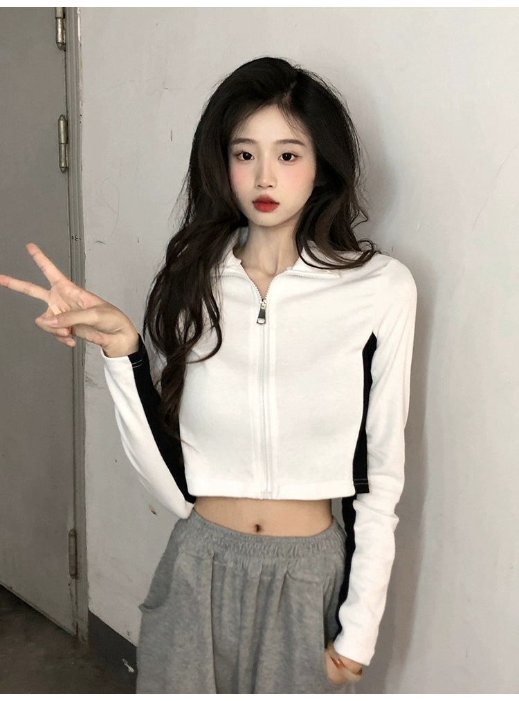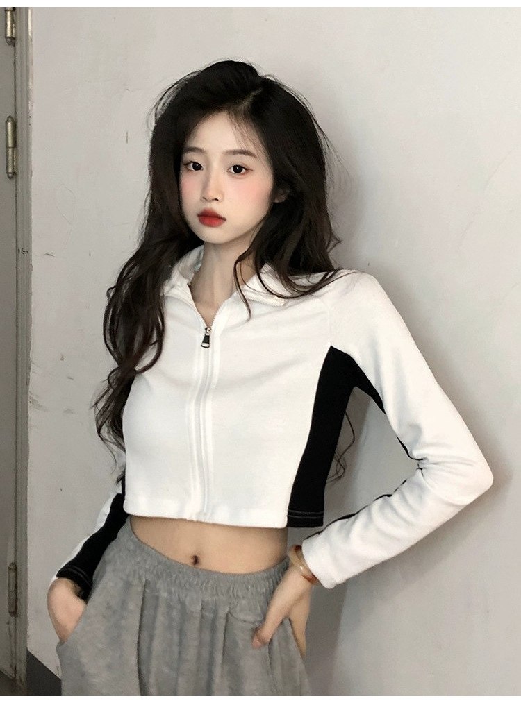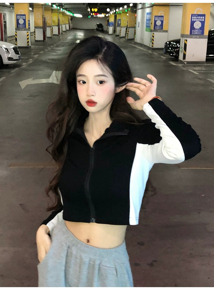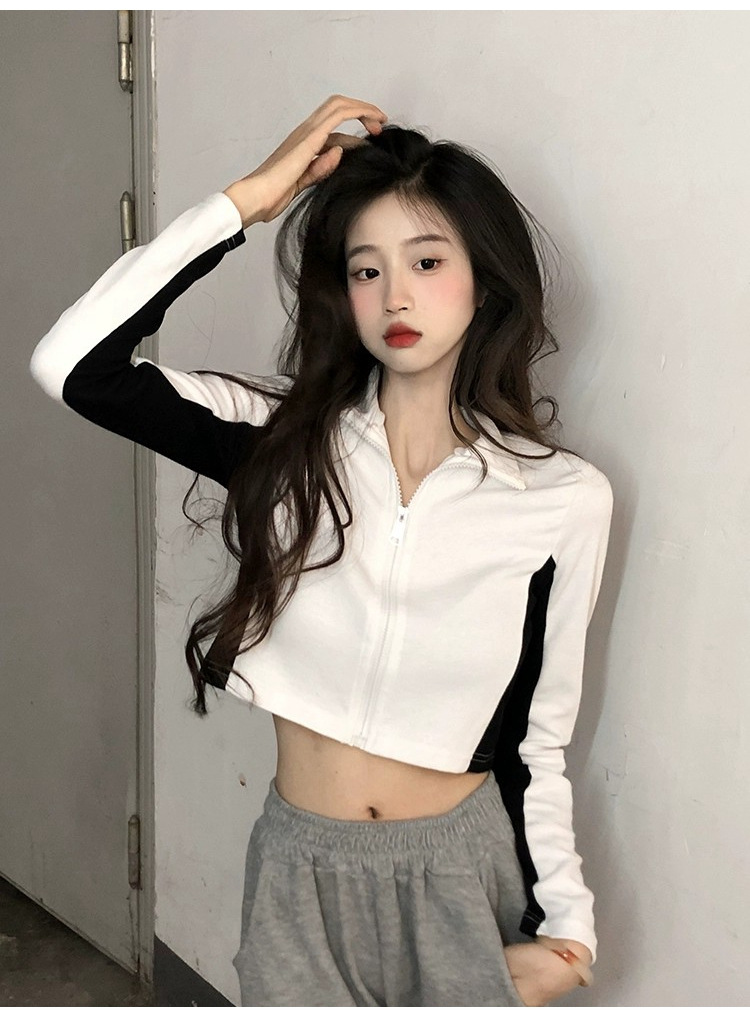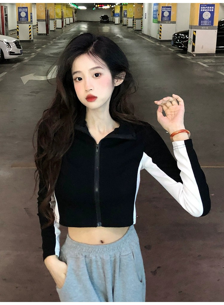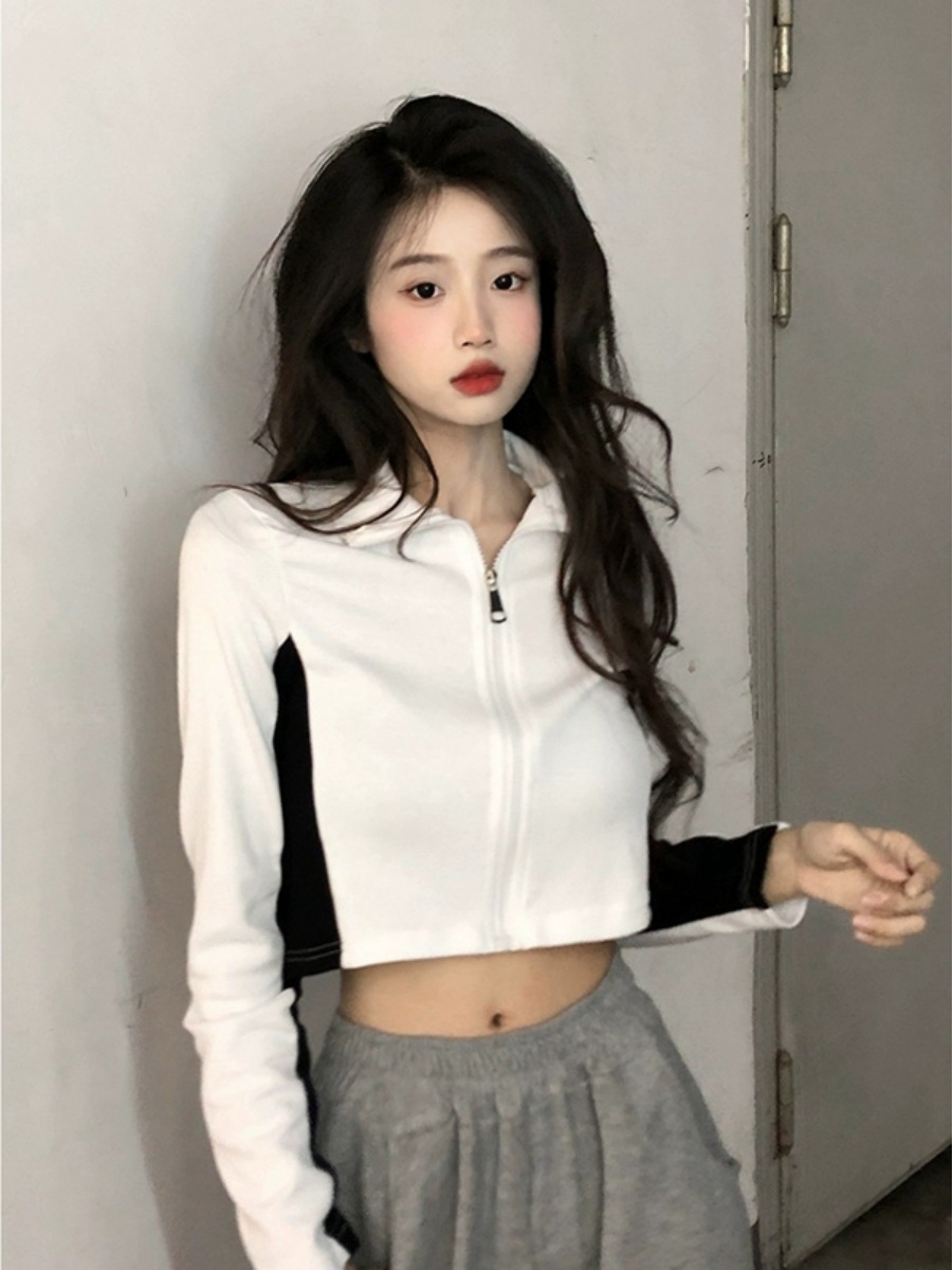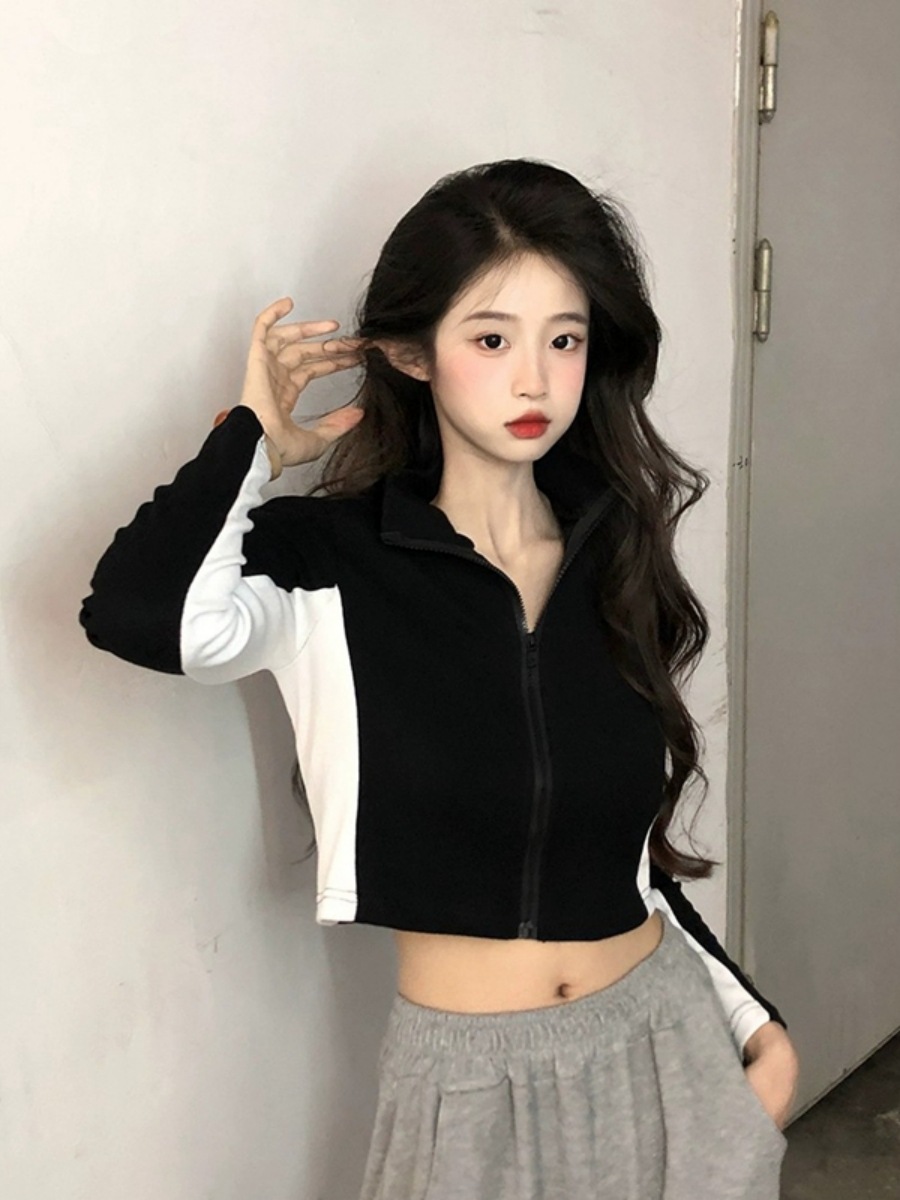 순수한 욕망 스타일 컬러 매칭 칼라 쇼트 코트 여성 가을 2023 새로운 레저 스포츠 웨스턴 스타일스토어 가기