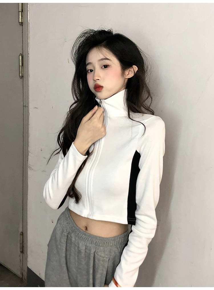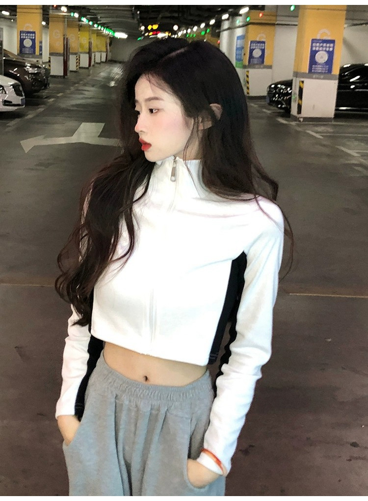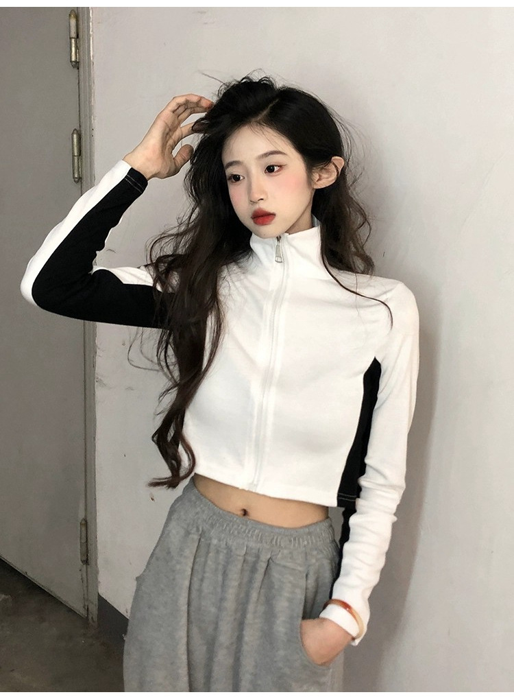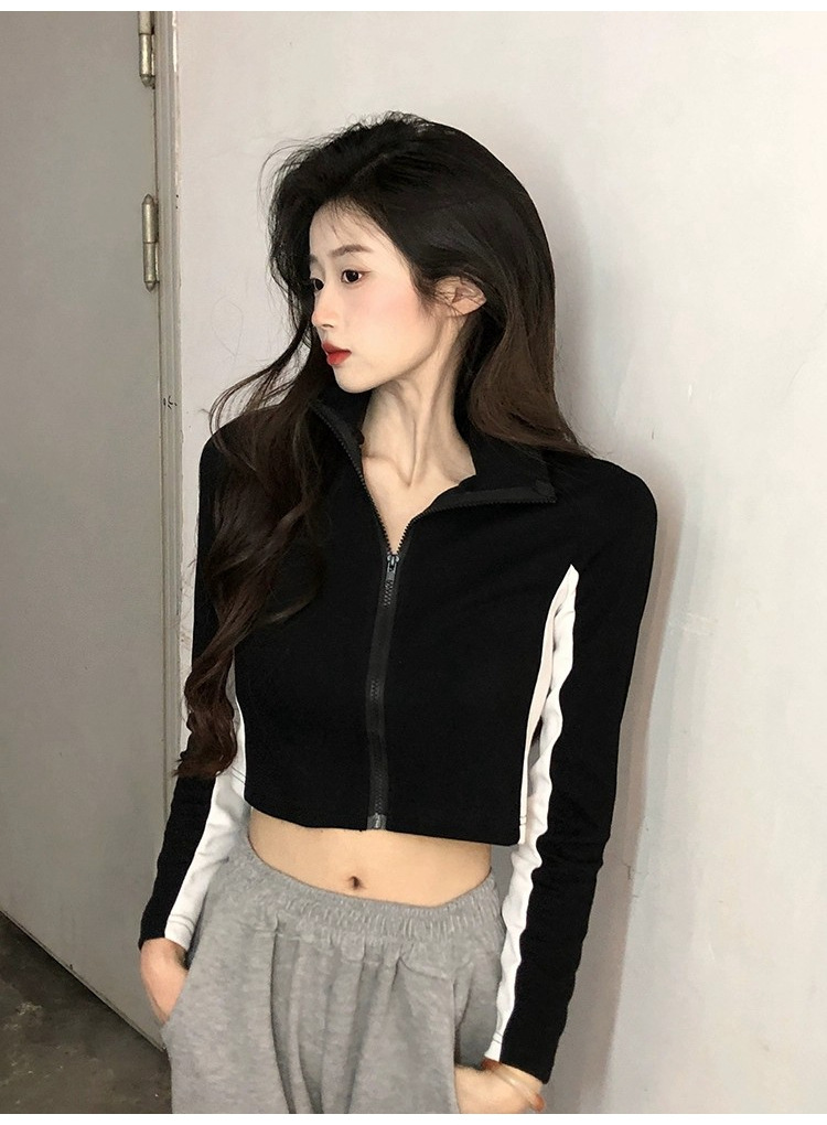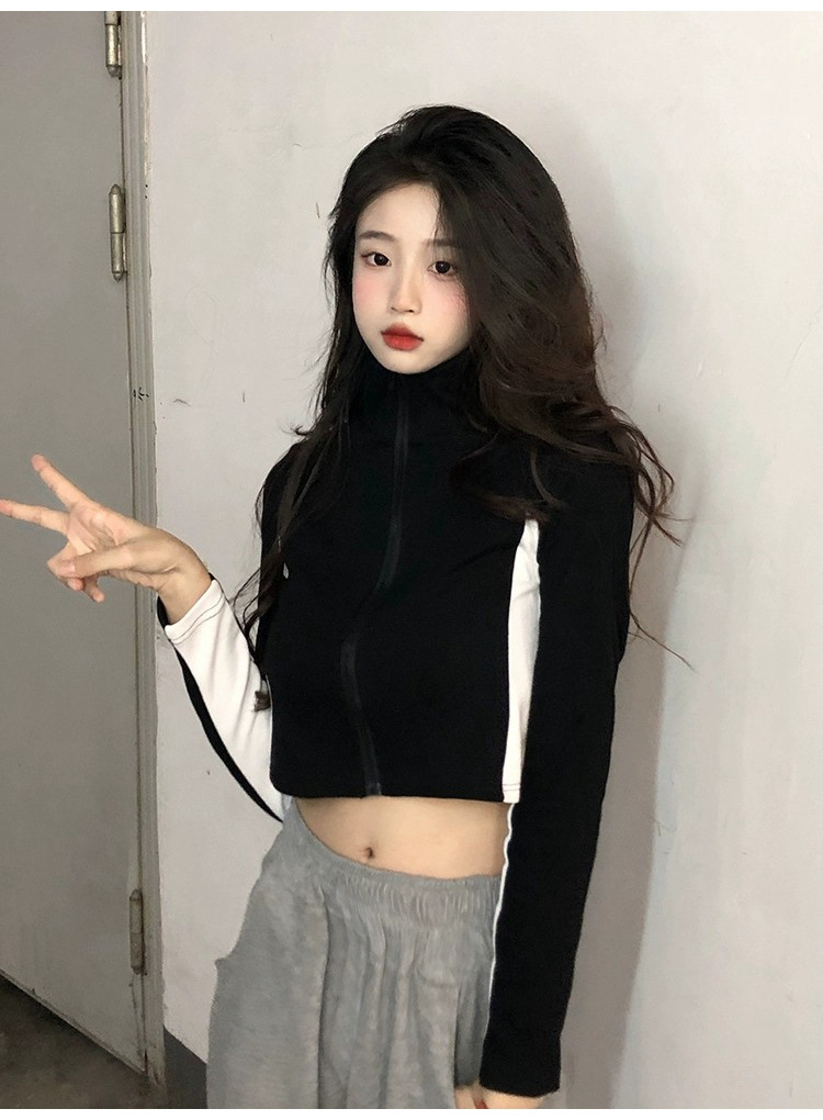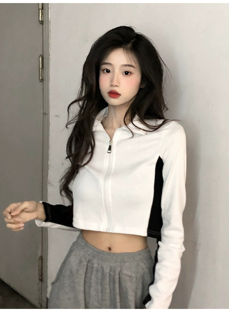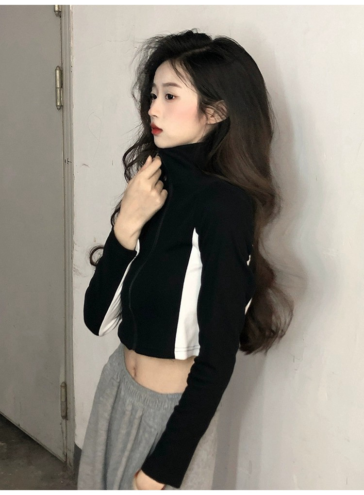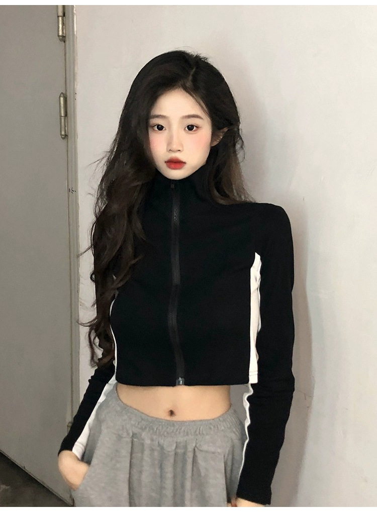 순수한 욕망 스타일 컬러 매칭 칼라 쇼트 코트 여성 가을 2023 새로운 레저 스포츠 웨스턴 스타일스토어 가기