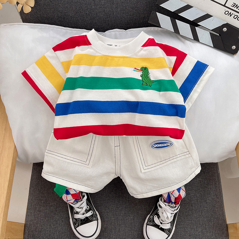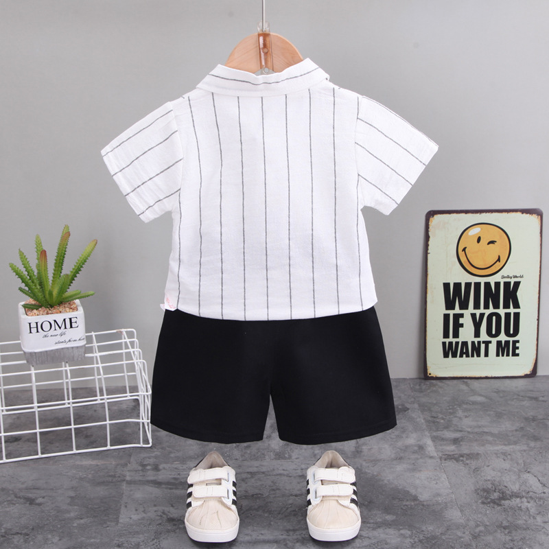 남아 여름 의류 세트 2025 여름 신상 유아 남아 패션 반팔 스트라이프 폴로 셔츠 투피스 세트 트렌디스토어 가기