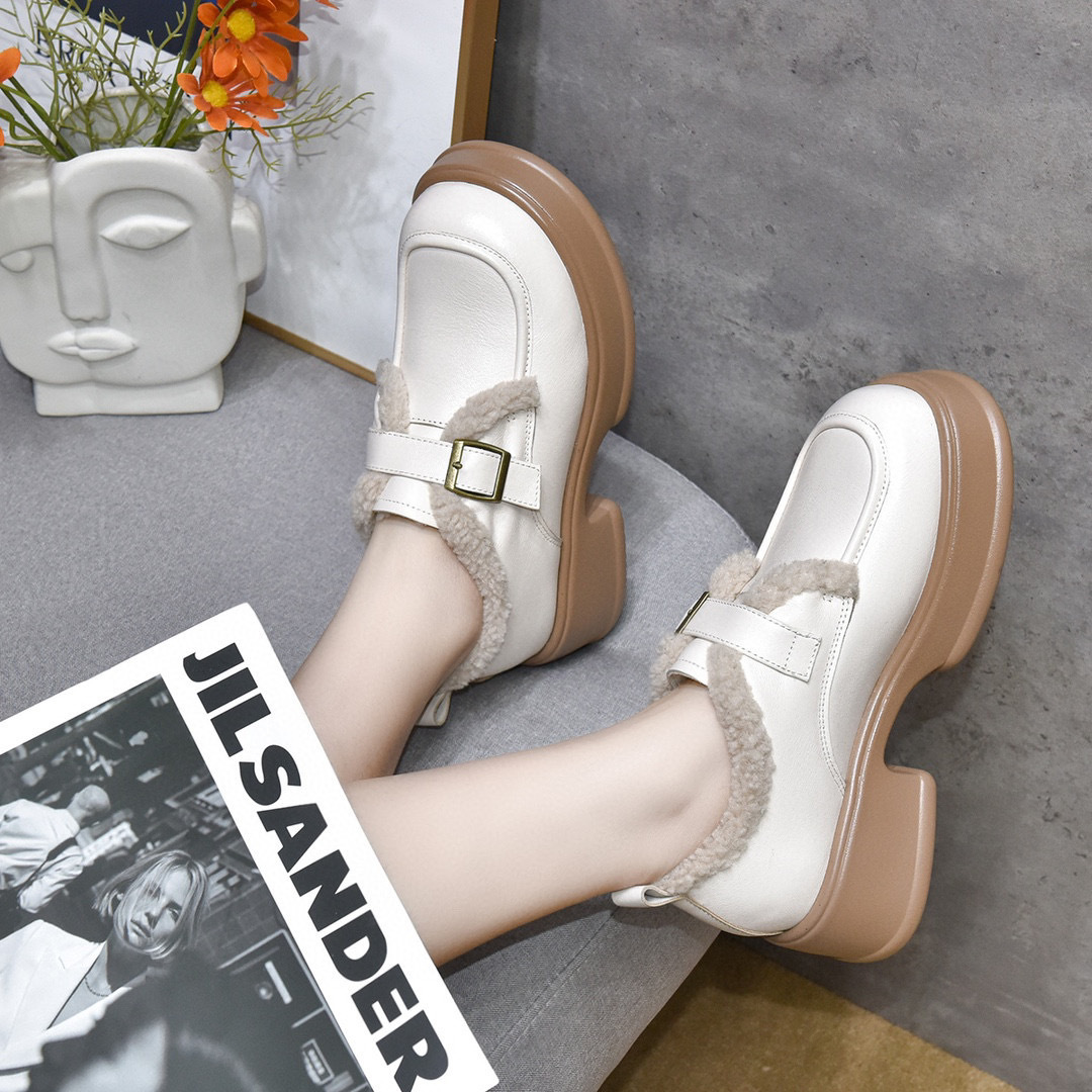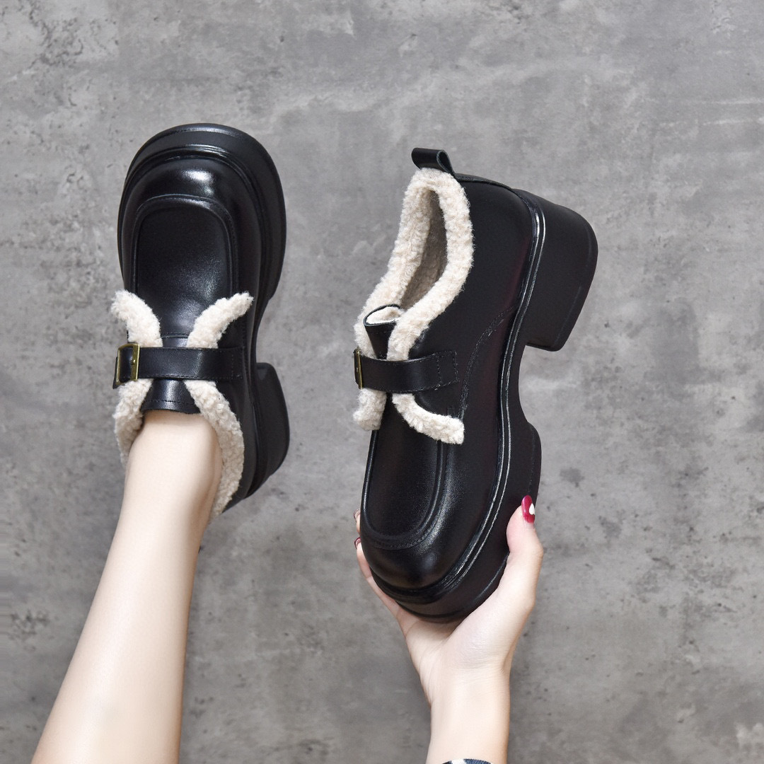 기모 작은 가죽 신발 여성 2023 가을과 겨울 새로운 라운드 헤드 두꺼운 밑창 신발 발 플랫폼 힐 로퍼와 한국 인형 신발스토어 가기