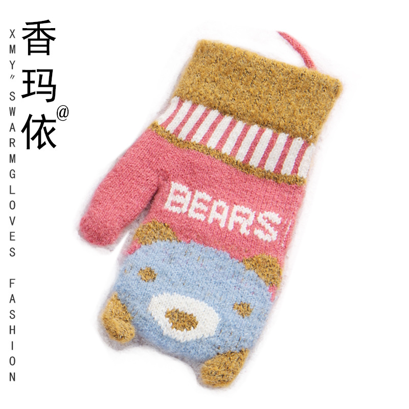 겨울 어린이 따뜻한 장갑 8-12 세 소년 소녀 끈 가방은 단층 두꺼운 머리카락을 나타냅니다.