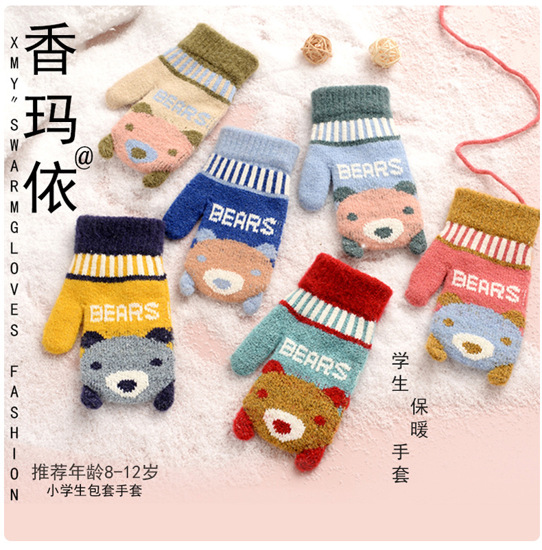 겨울 어린이 따뜻한 장갑 8-12 세 소년 소녀 끈 가방은 단층 두꺼운 머리카락을 나타냅니다.스토어 가기