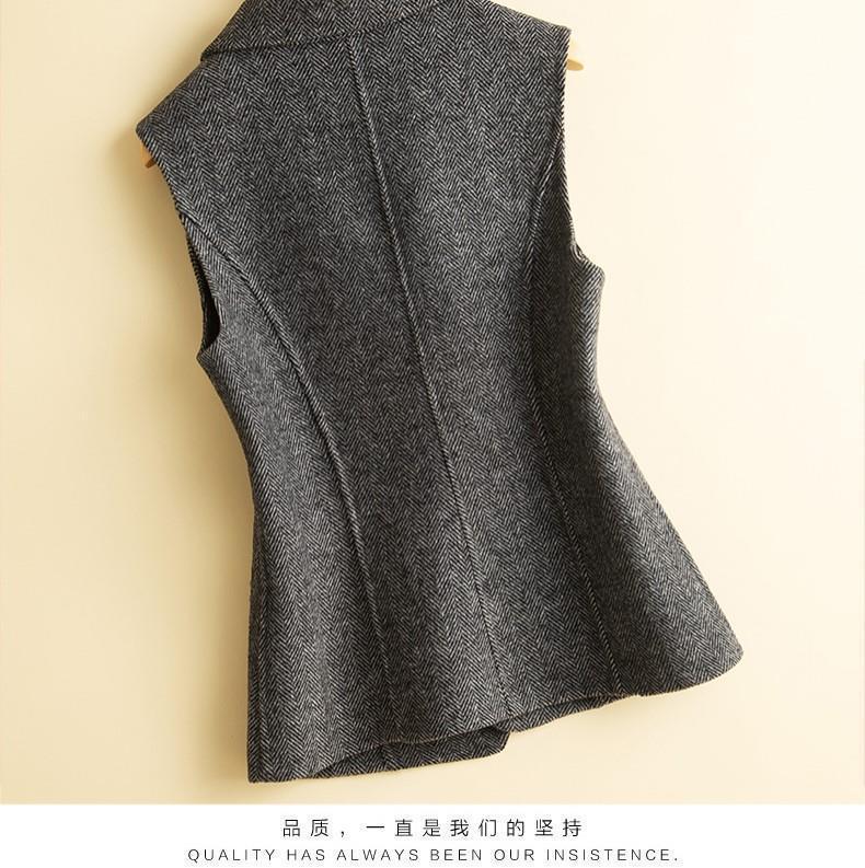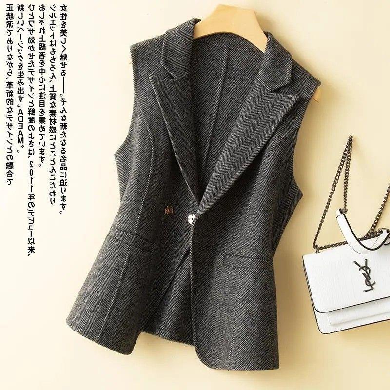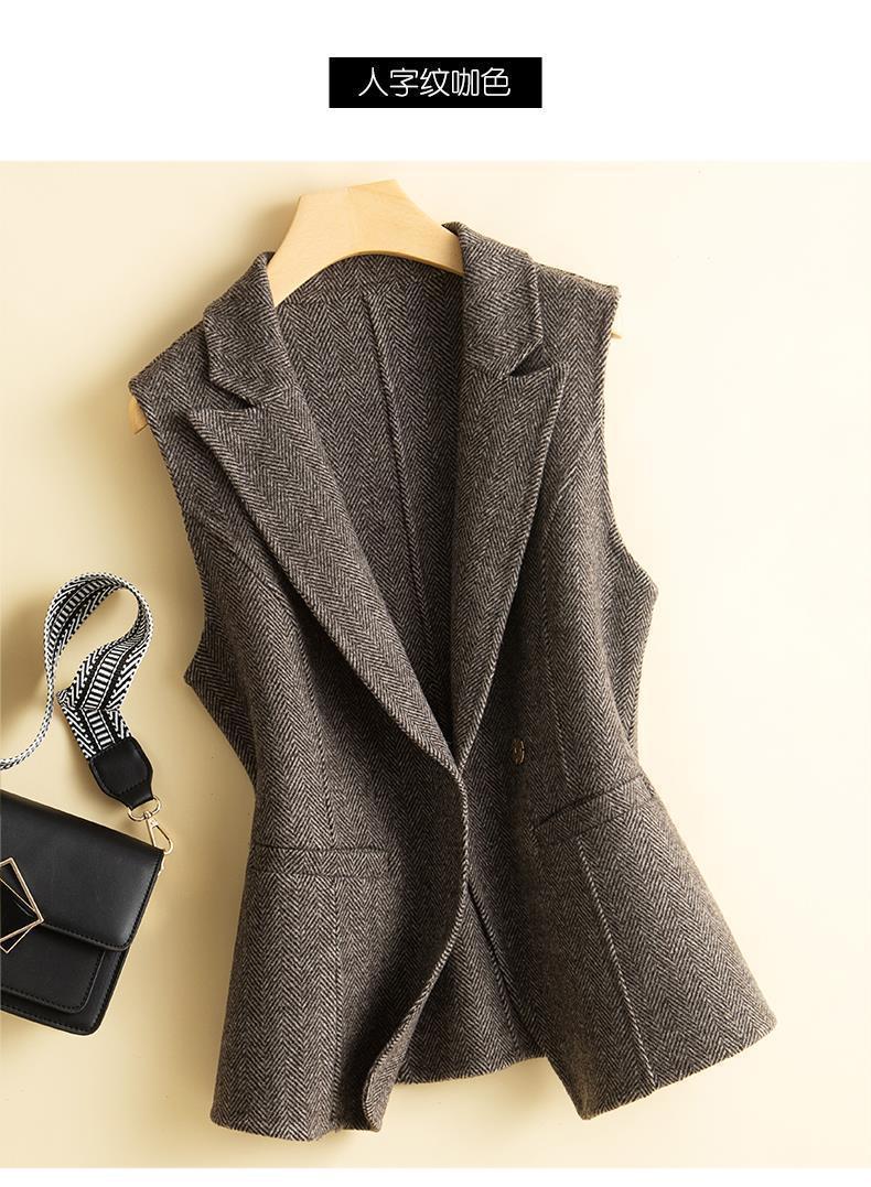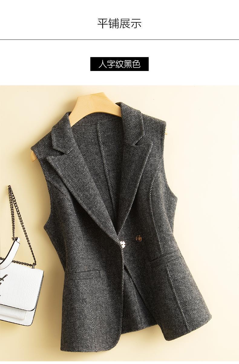 가을과 겨울 새로운 모직 조끼 여성용 세트 칼라 짧은 슬림 조끼 겉옷 양복 조끼 양복 조끼 외투 겉옷스토어 가기