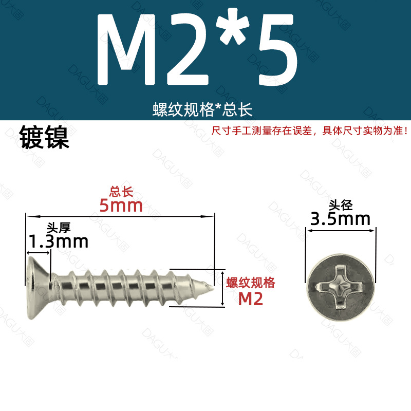 • 접시 머리 셀프 태핑 M2 * 5 니켈 도금