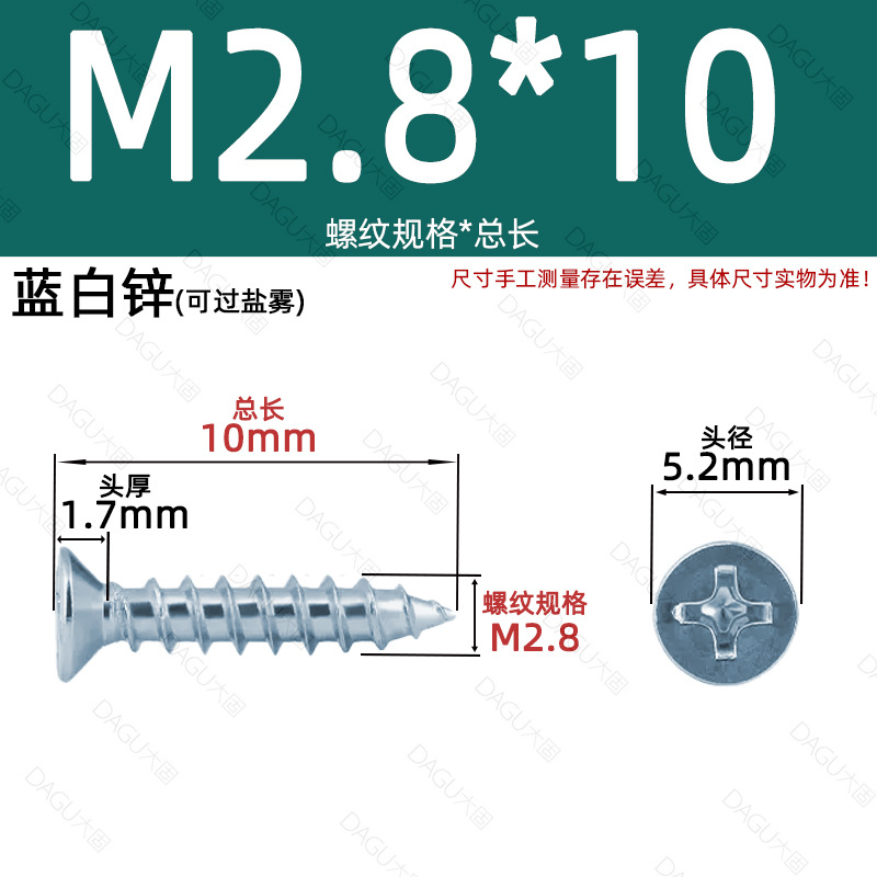 • 카운터 싱크 헤드 셀프 태핑 M2.8 * 10 파란색과 흰색 아연 (소금 스프레이를 통과 할 수 있음)