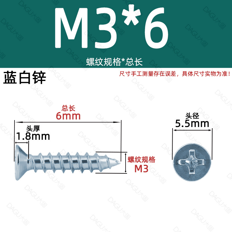 • 접시 머리 셀프 태핑 M3 * 6 블루 화이트 아연