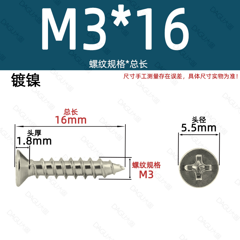 • 접시 머리 셀프 태핑 M3 * 16 니켈 도금