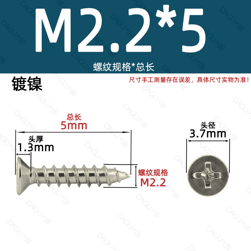 • 접시 머리 셀프 태핑 M2.2 * 5 니켈 도금